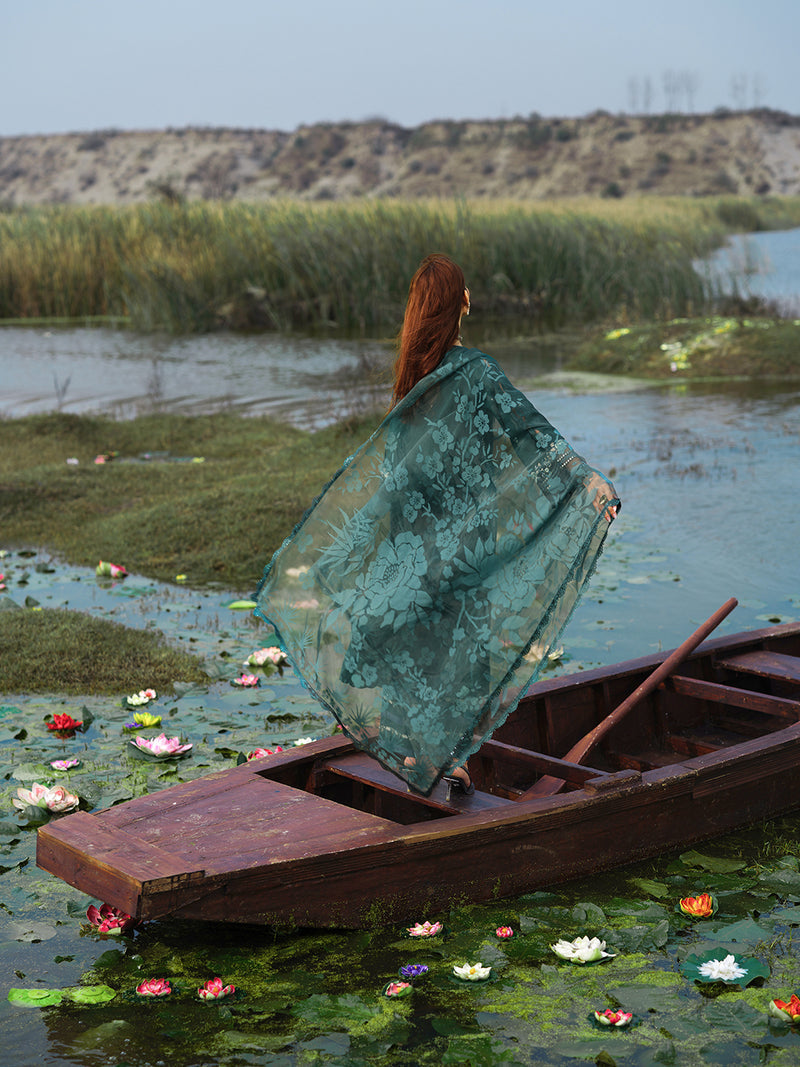 Organza burnout dupatta, a vision of elegance, graced with intricate sequin embroidery laces