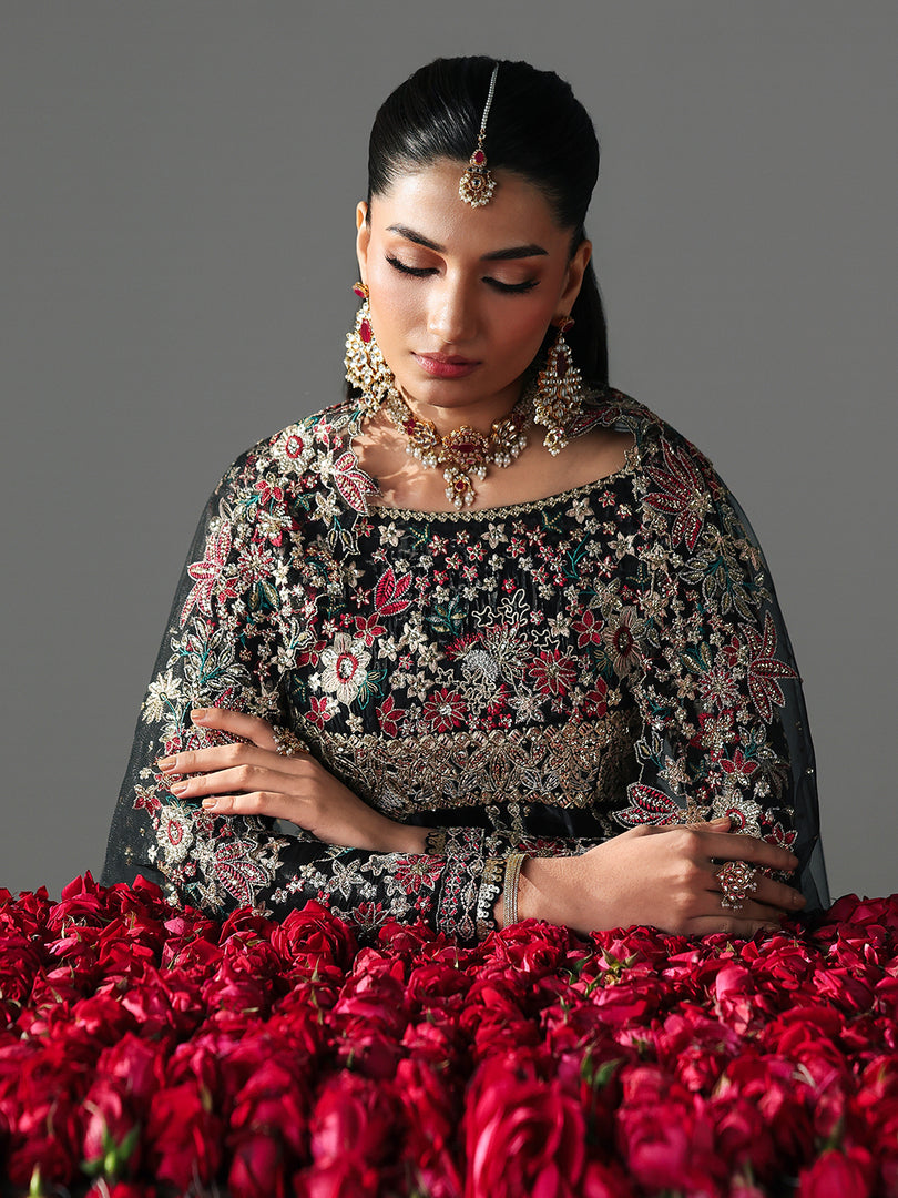 Luxurious silk maxi adorned with dazzling sequin embroidery and delicate lace accents.