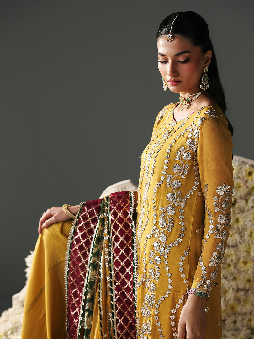 Chiffon dupatta, which showcases both gotta patti embellishments and organza lurex patches