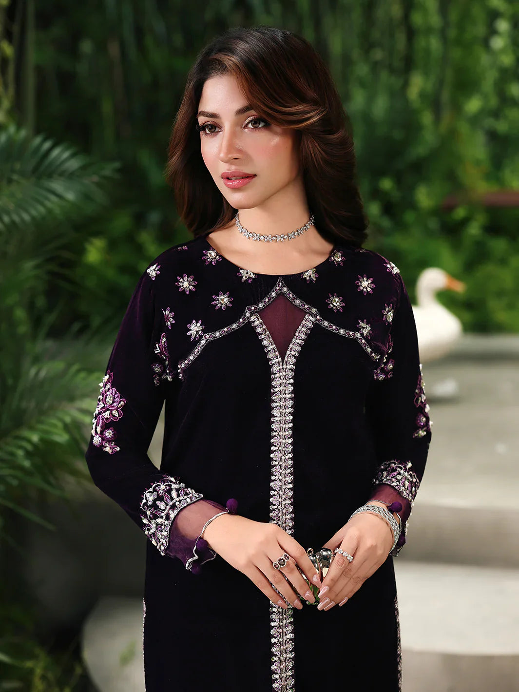 Luxury with our exquisite 9000-micron velvet shirt, adorned with dazzling embroidery, shimmering pearls, sparkling stones, and radiant crystals, all enhanced by intricate cutdana work.