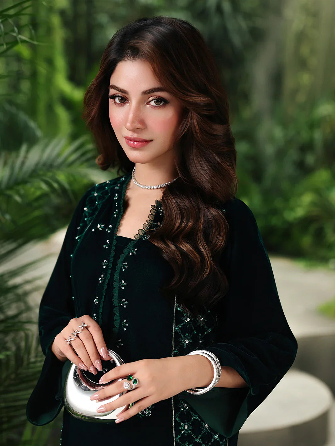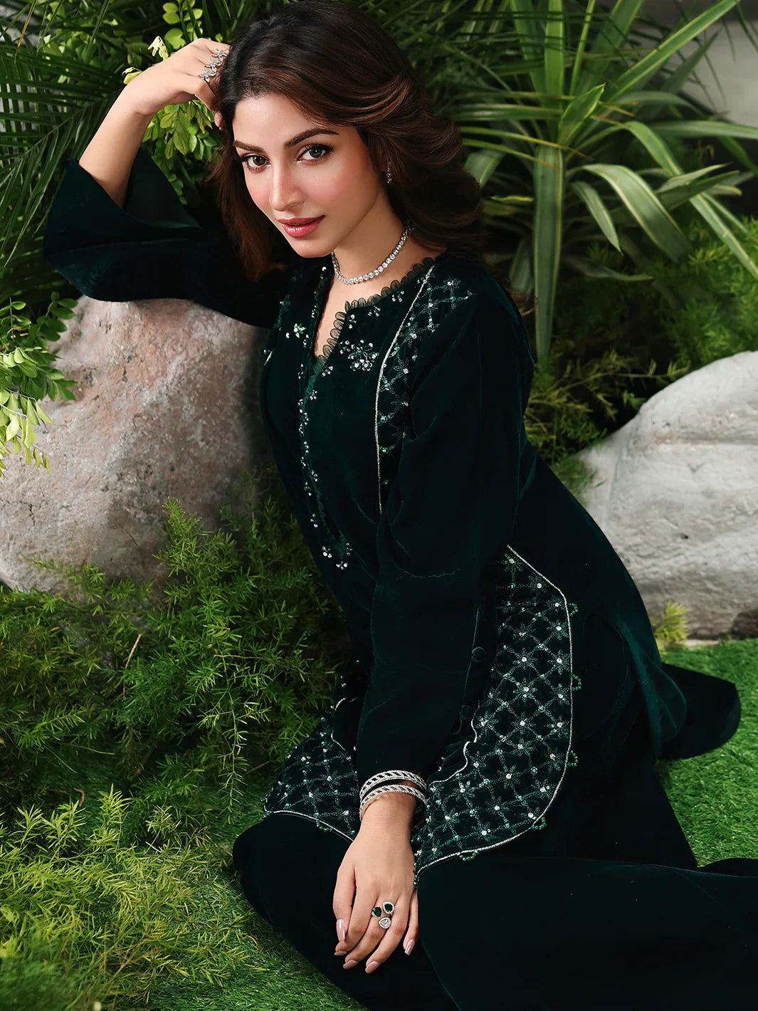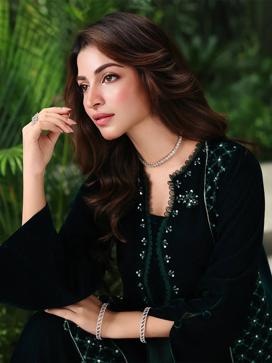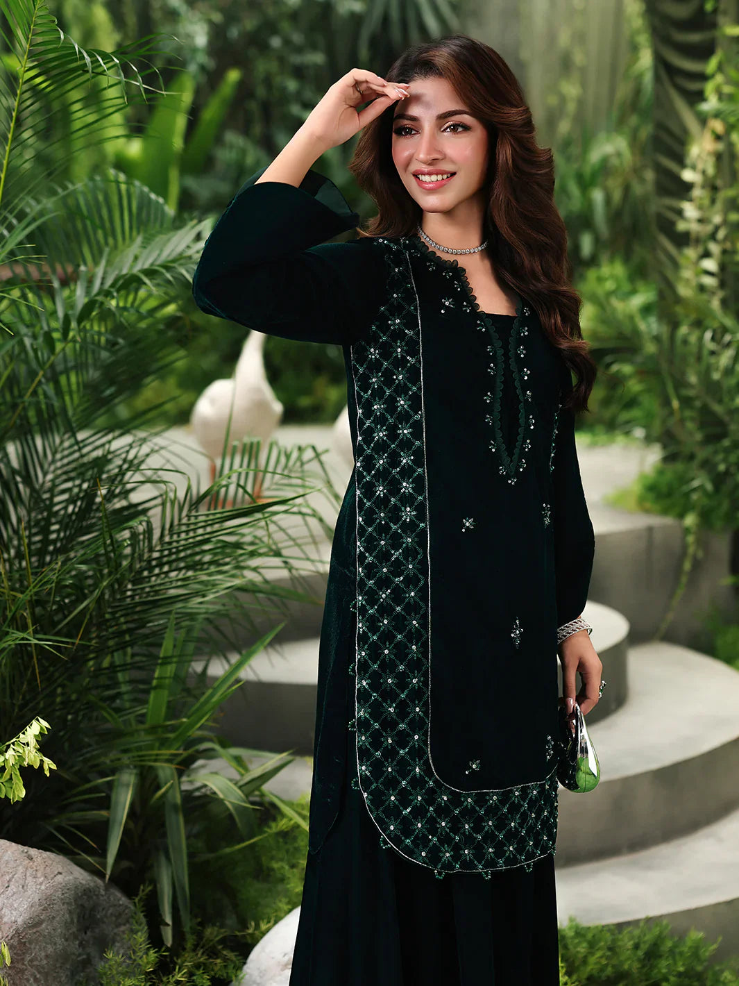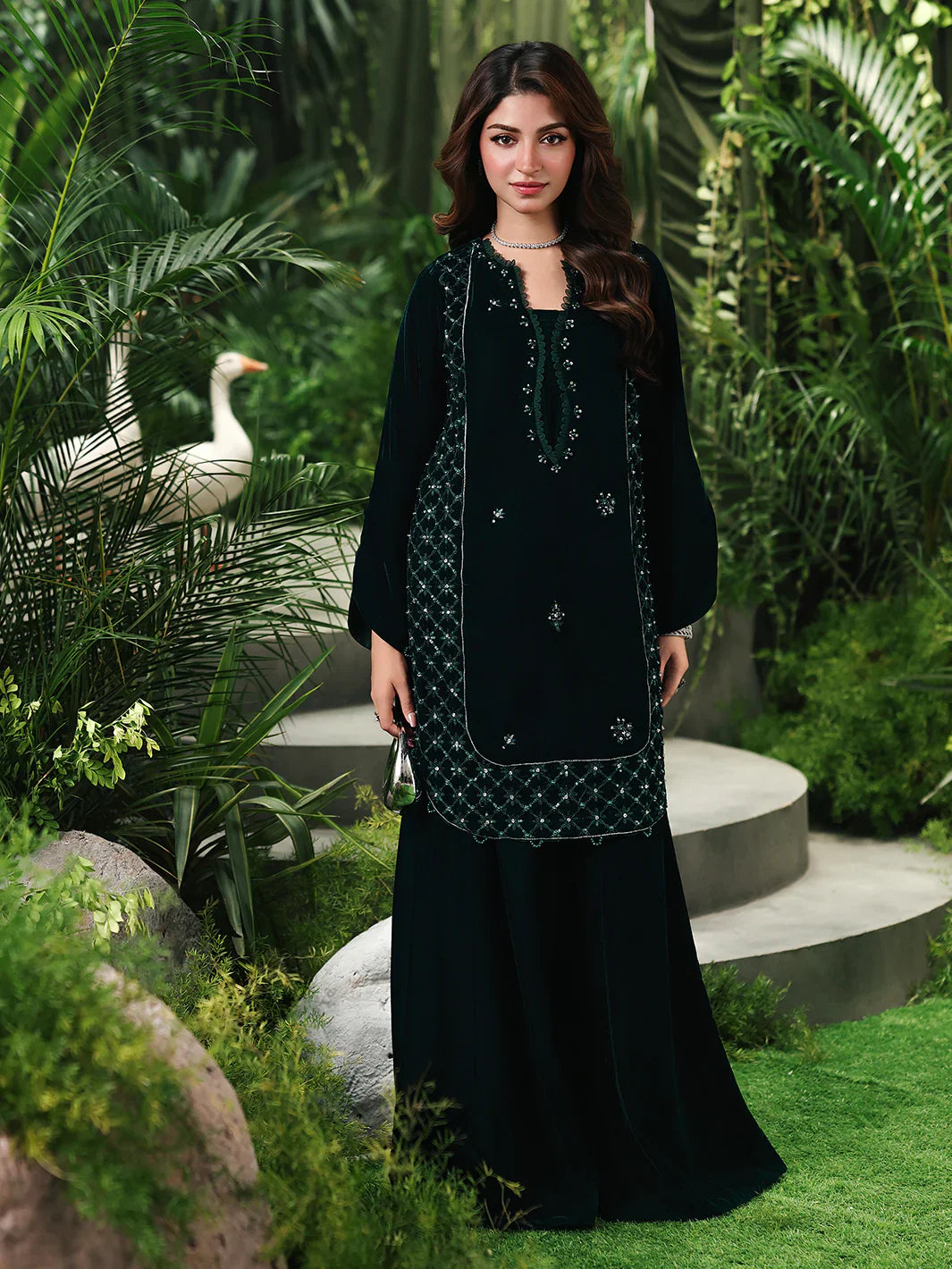 Velvet panel shararah embodies sophistication and artistry at its finest.