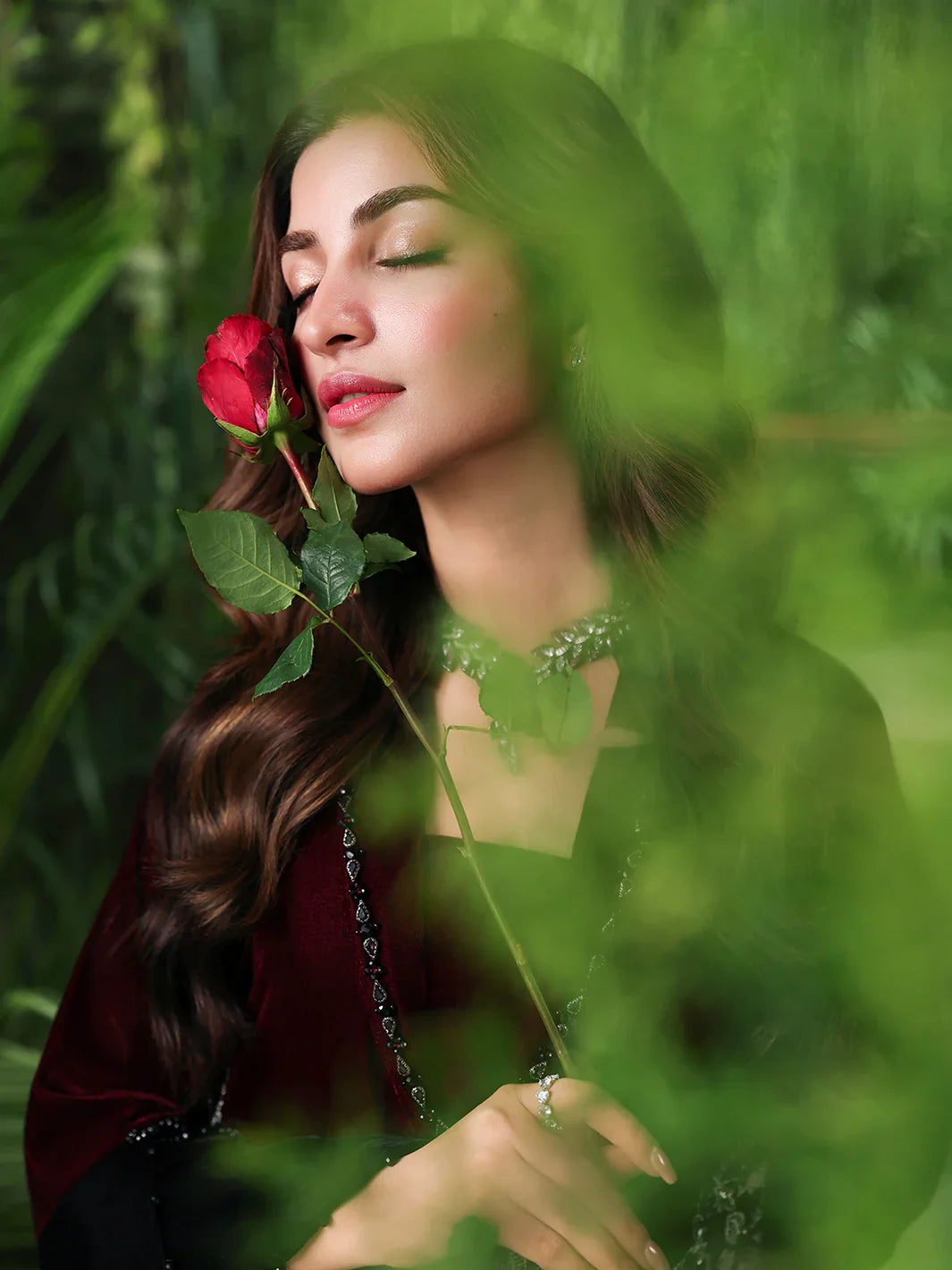 Luxury velvet shirt, meticulously crafted from a sumptuous 9000-micron fabric.adorned with intricate embroidery, dazzling stones, and exquisite 3D floral embellishments
