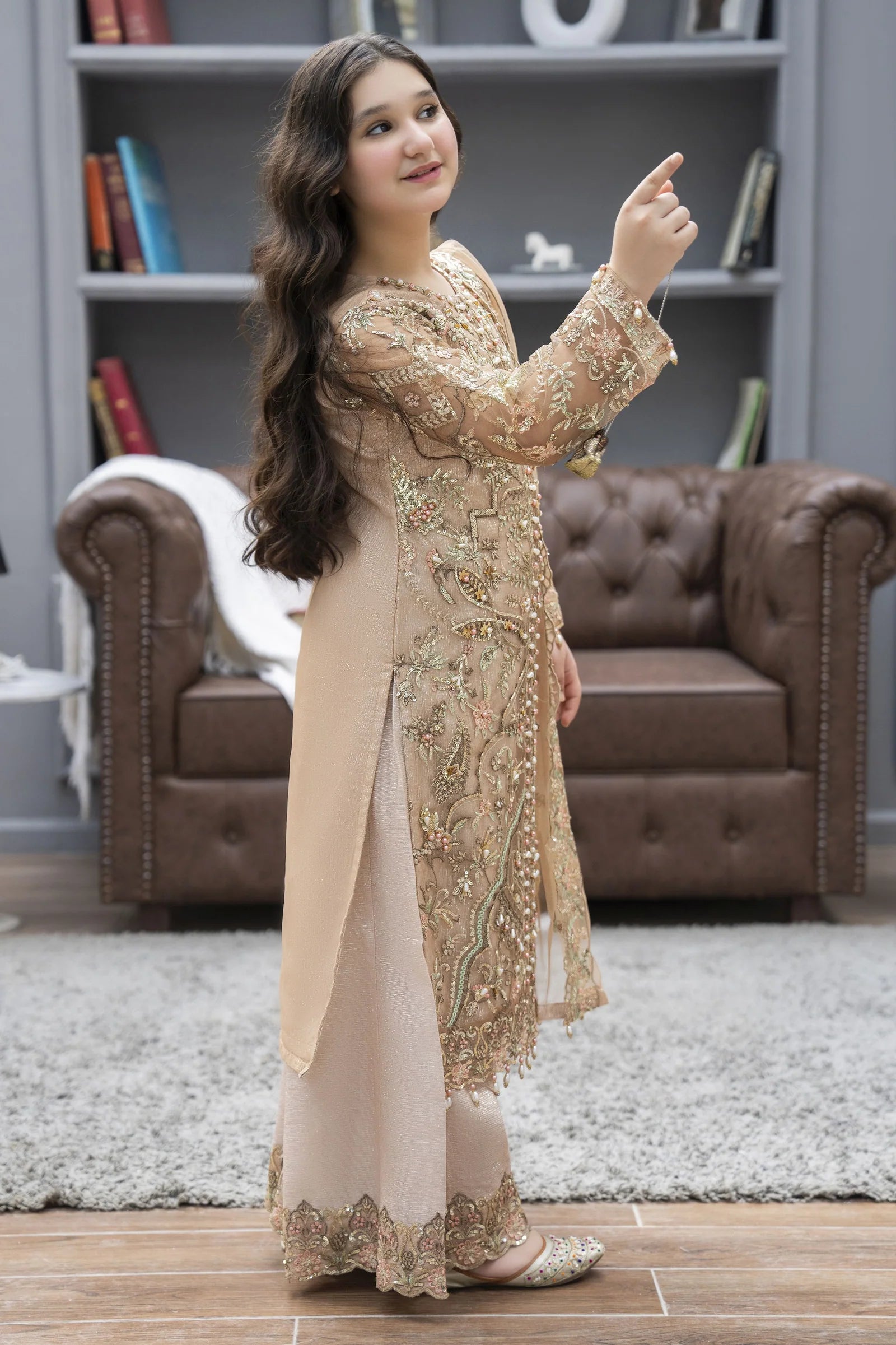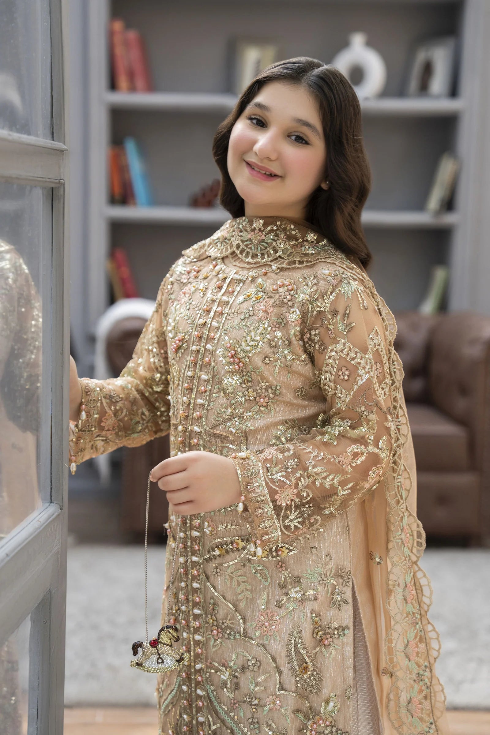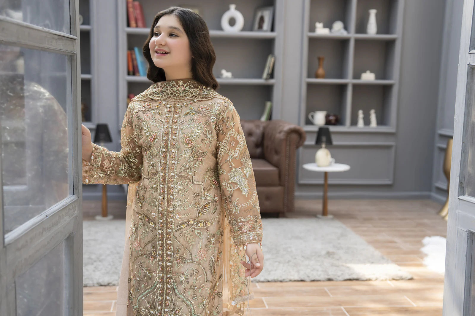 A matching net sequin-embroidered dupatta lends an extra touch of elegance, while the shimmering sequin-embroidered sharara completes this luxurious look. This exquisite outfit is perfect for making a grand entrance and turning heads at any special event.