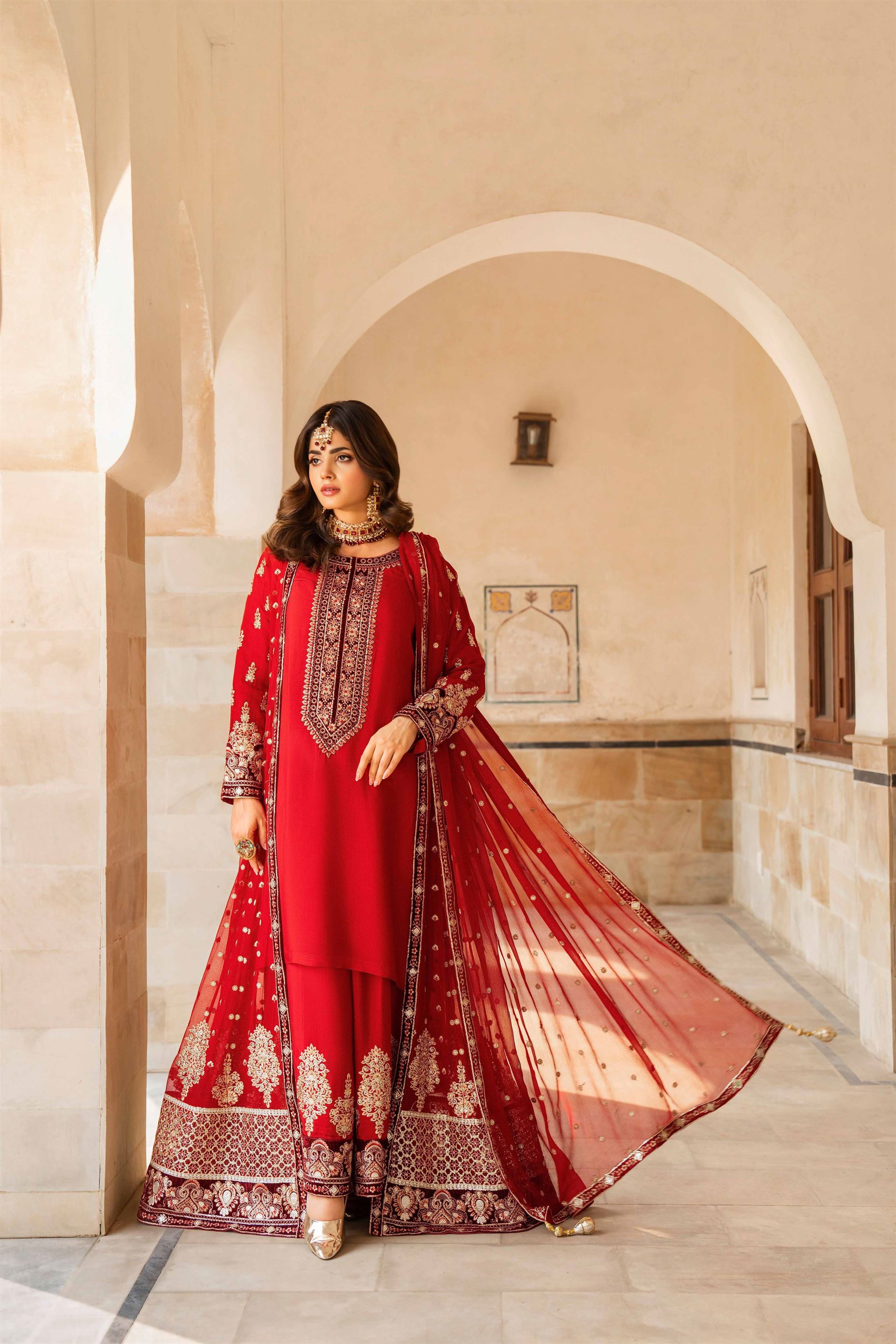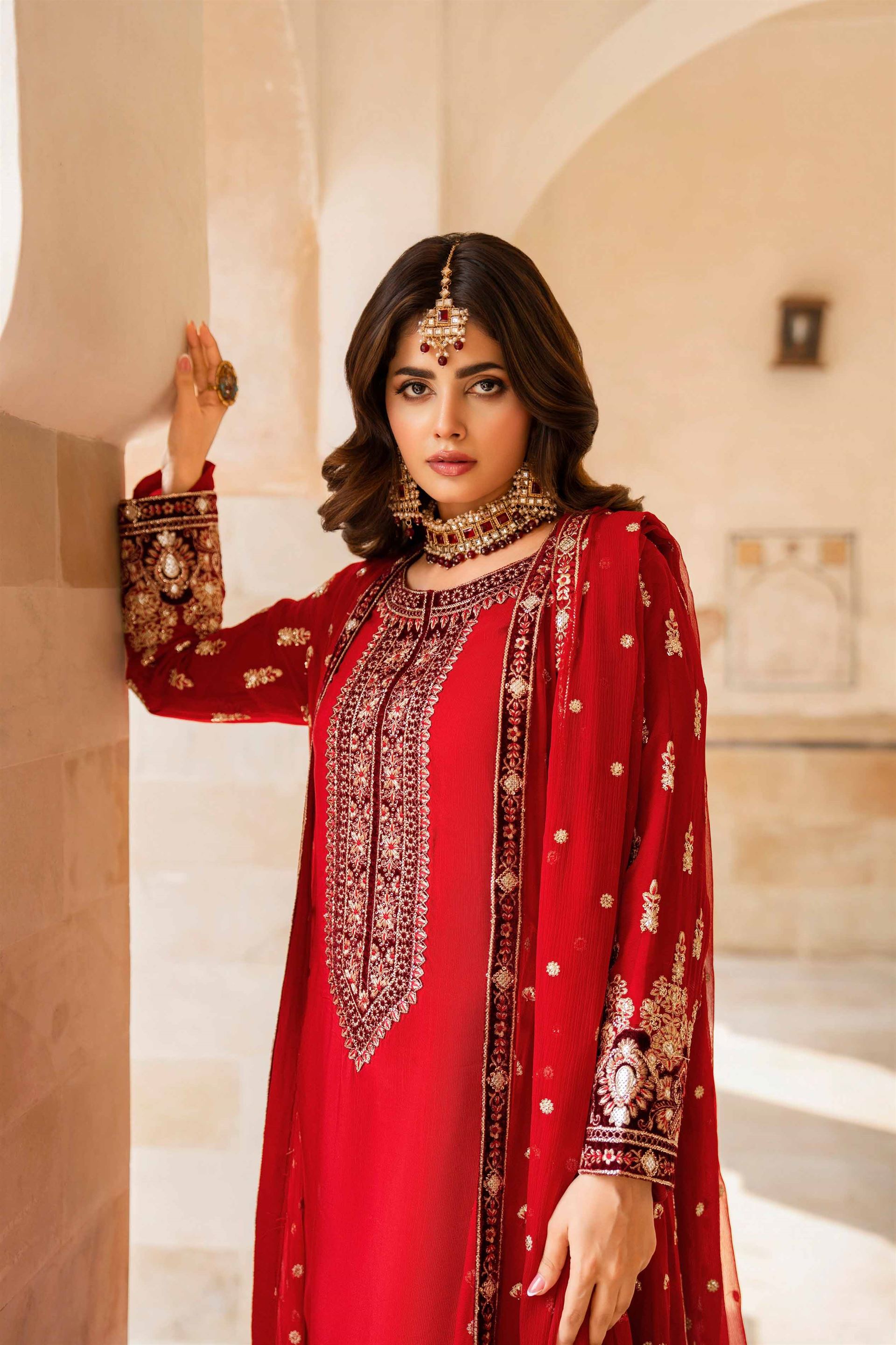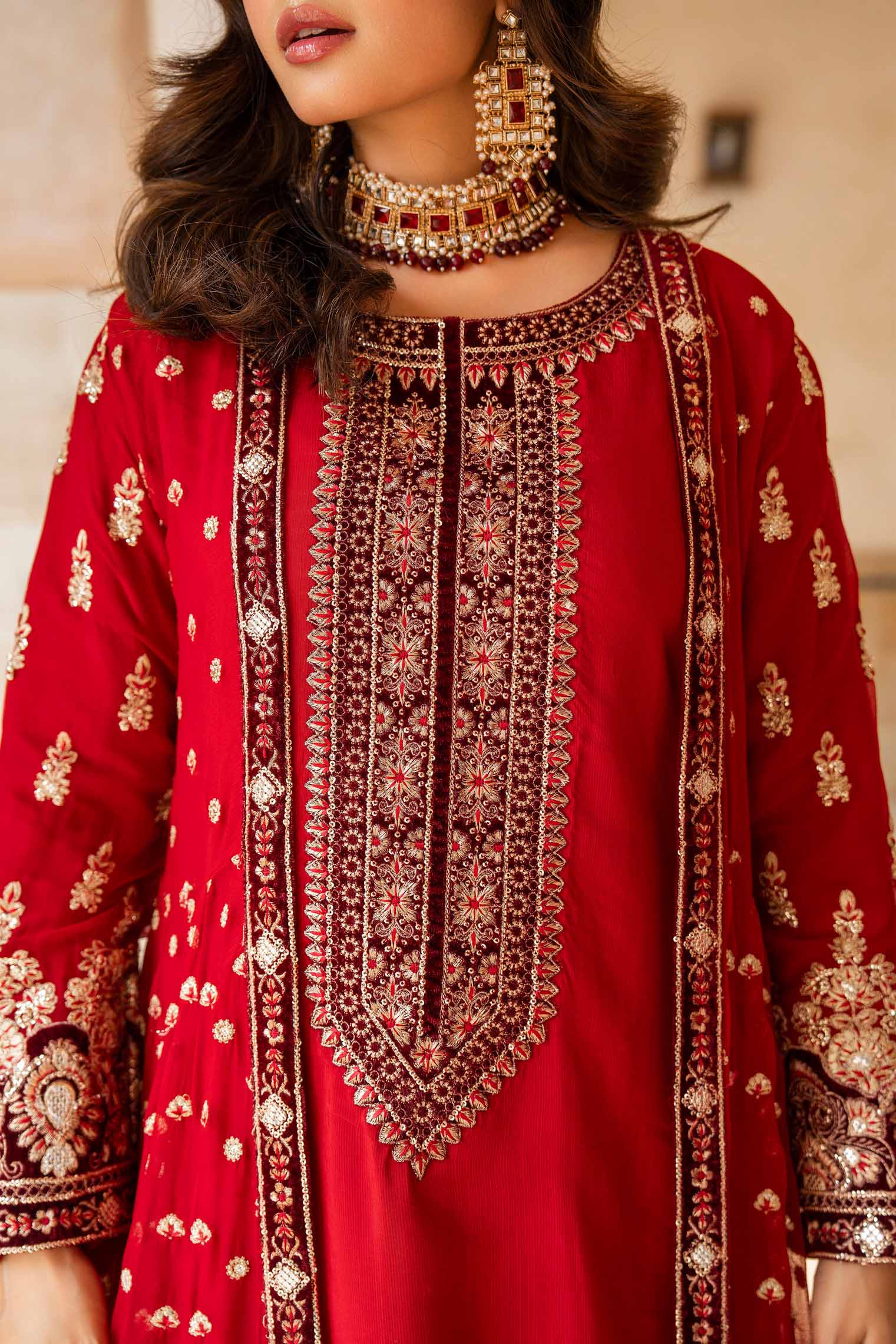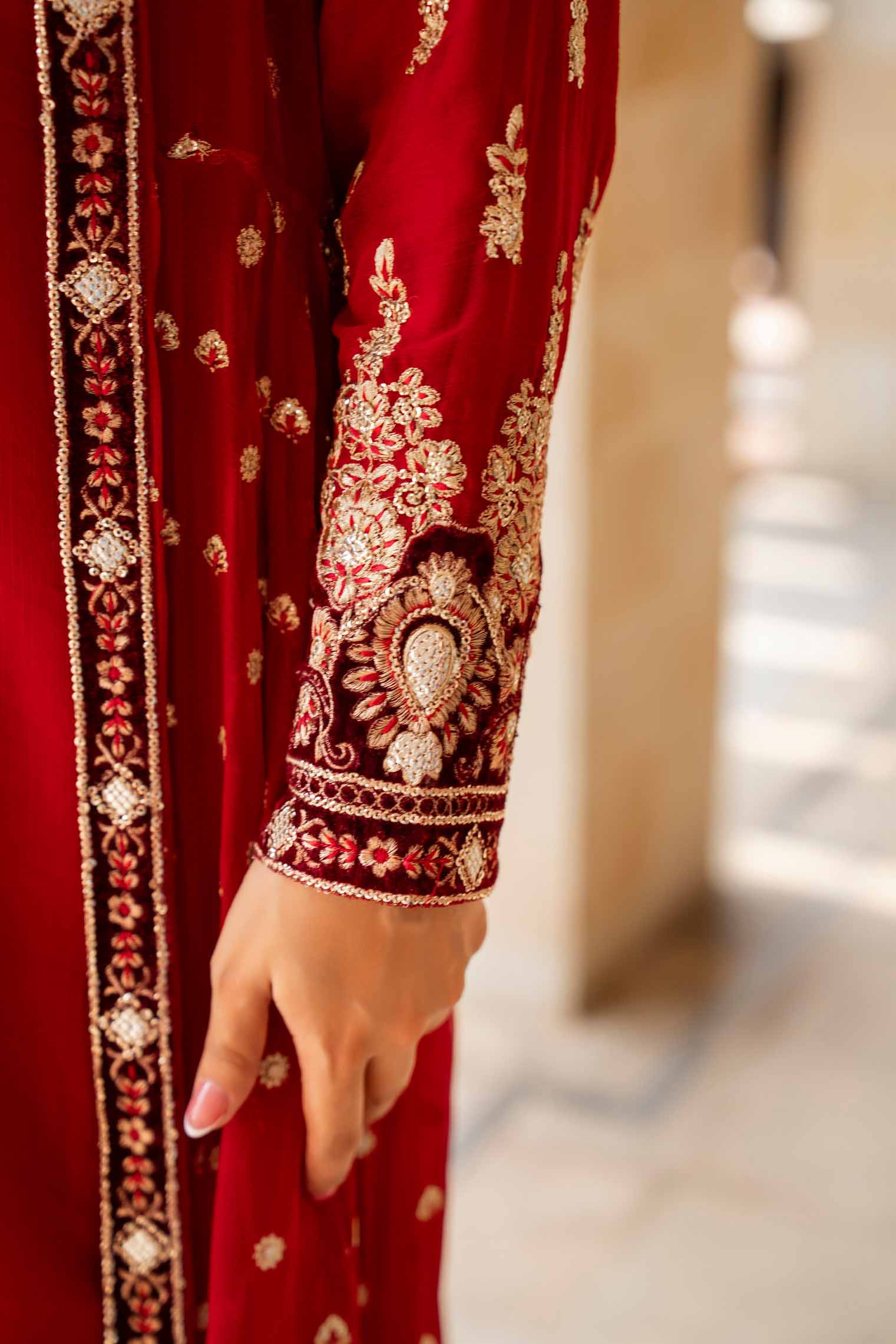 Raw Silk Grip 2 Piece with Chiffon Gown and Velvet Patch on Neckline Sleeves and Border
