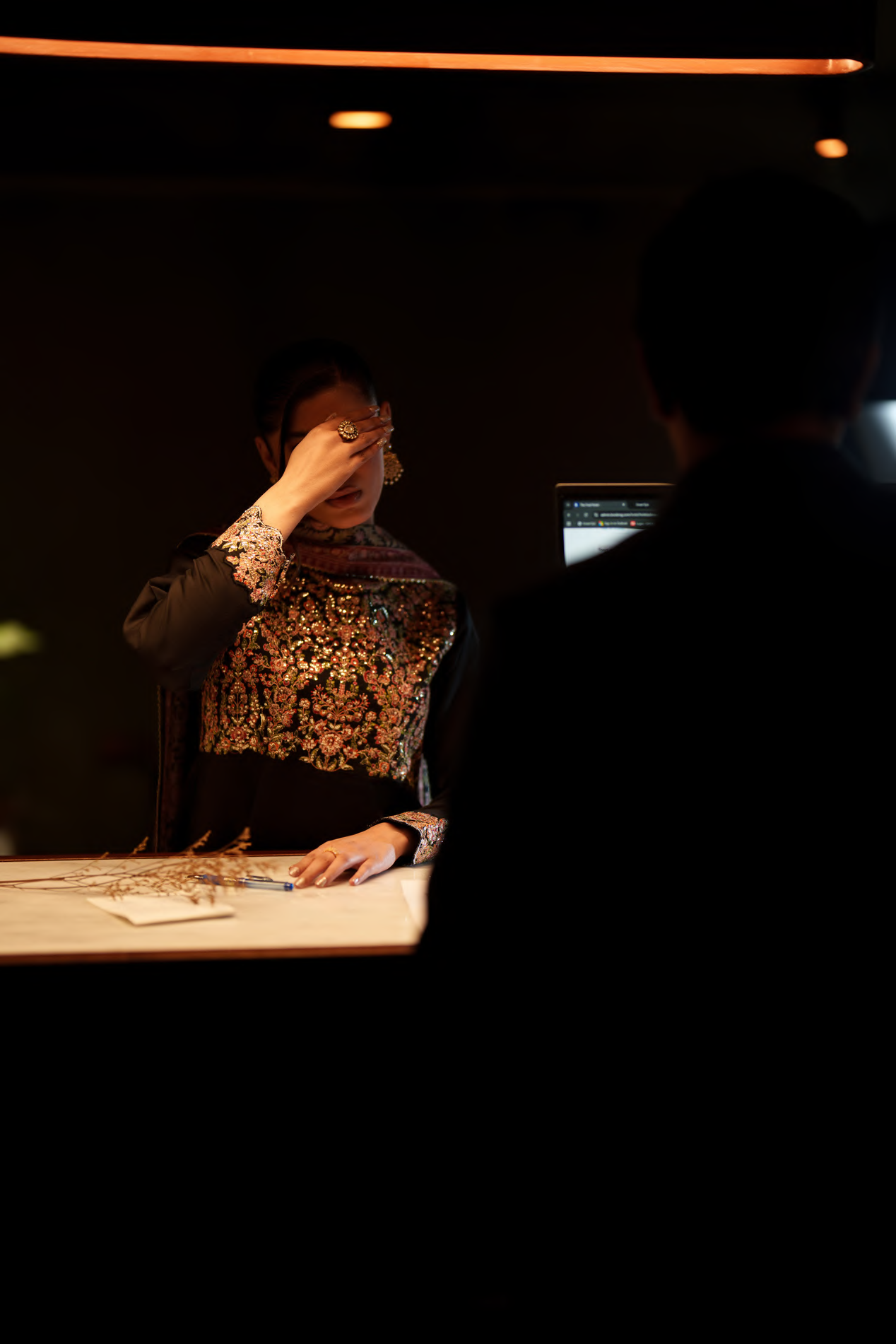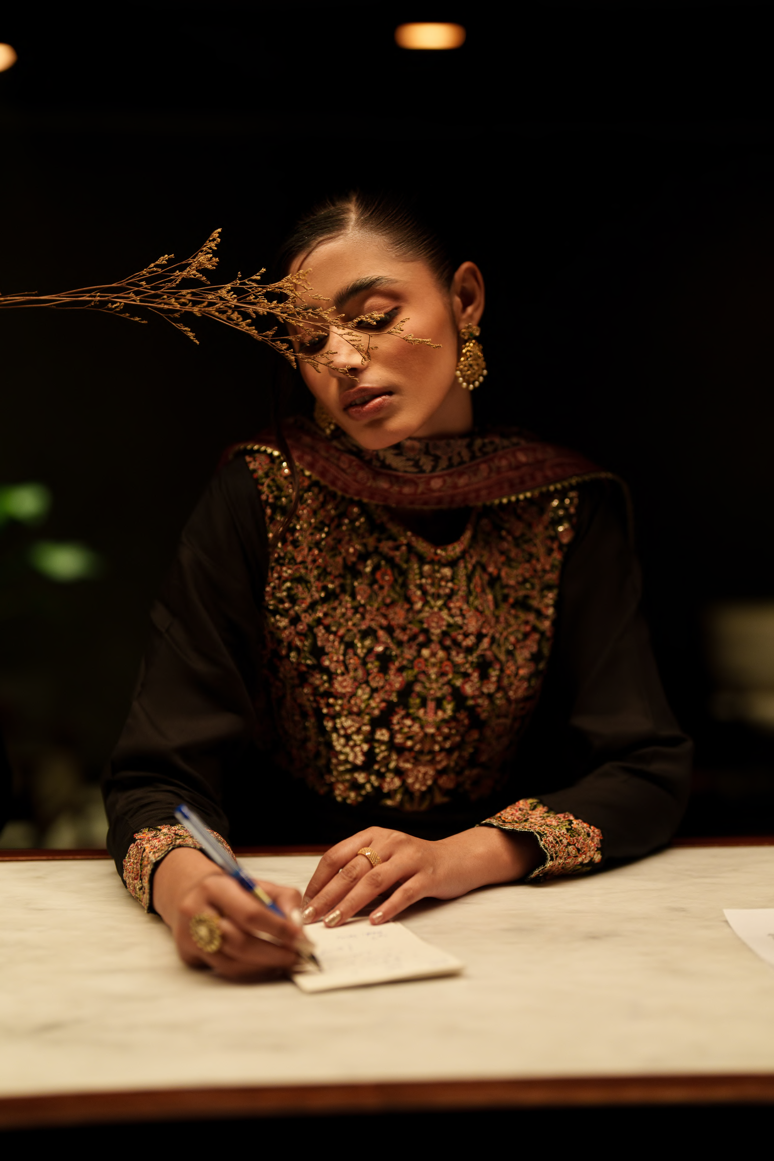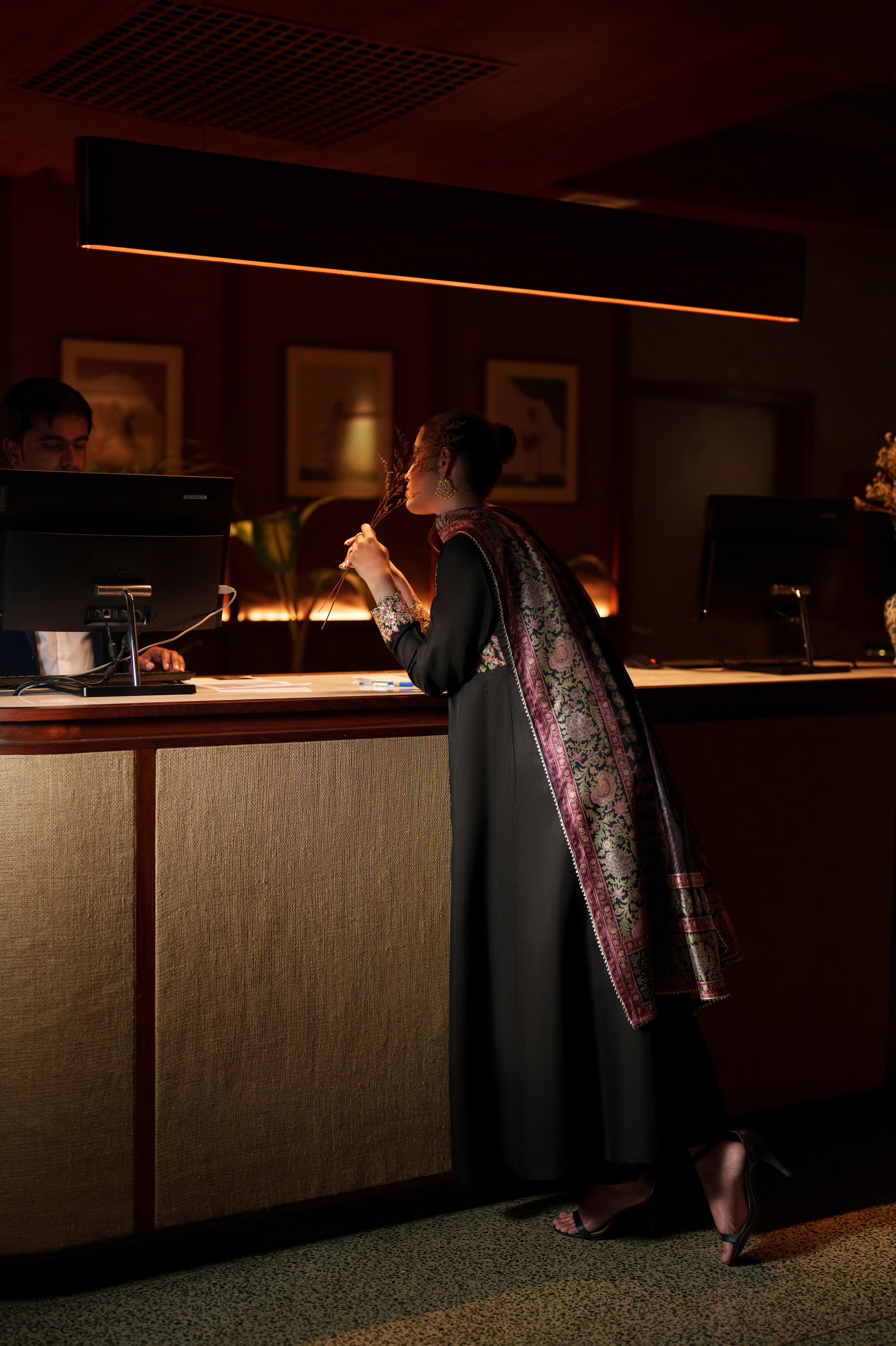 Make a striking statement with the Luxury Classic Black Maxi, designed for effortless festive drama. Crafted in a timeless black hue, this maxi-style ensemble flows with elegance, creating a powerful yet graceful silhouette. The refined detailing and fluid movement make it a perfect choice for festive evenings and formal celebrations.