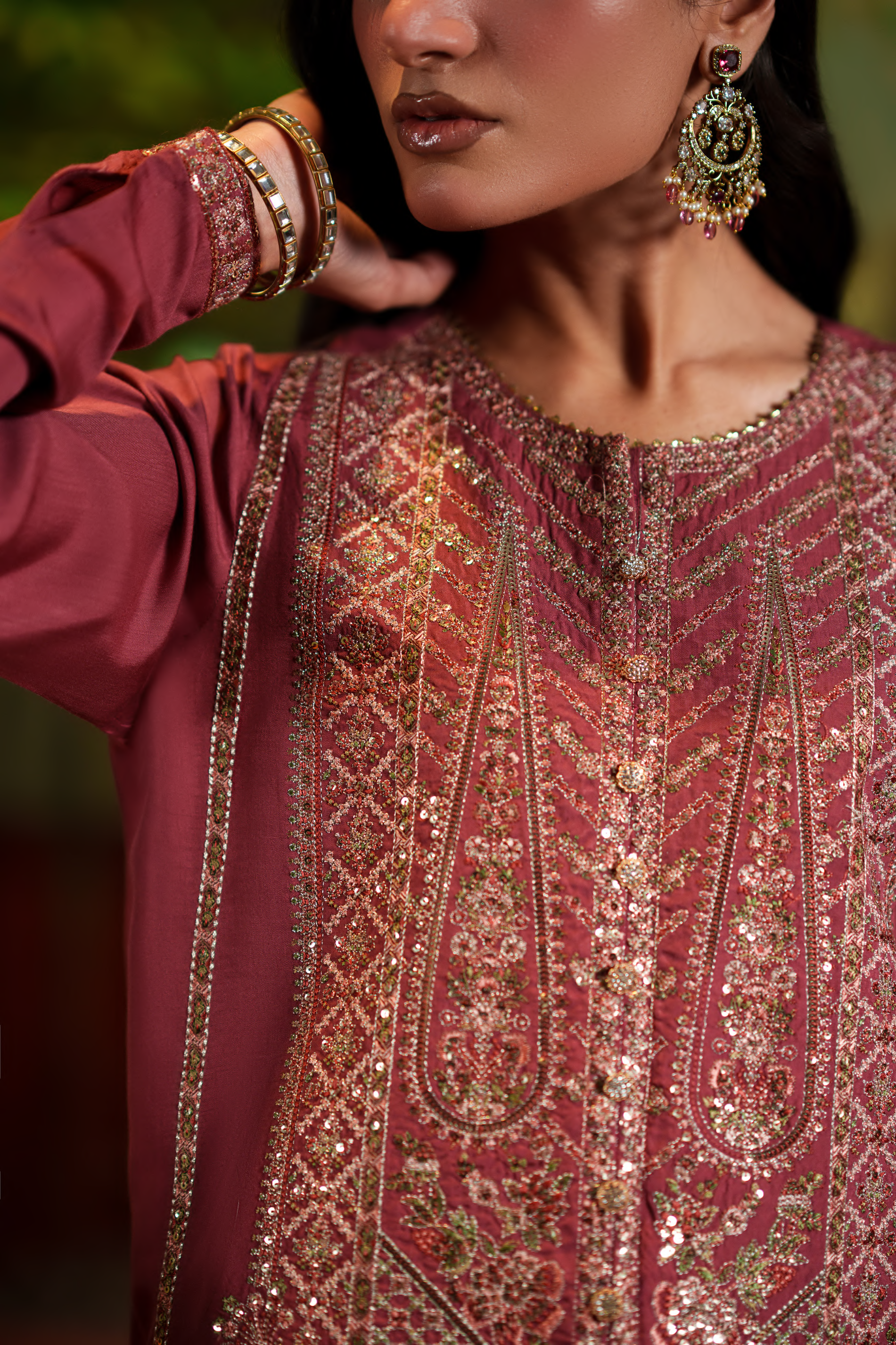 Maribel Rich Rosewood – Gold Embroidery | Patterned Dupatta