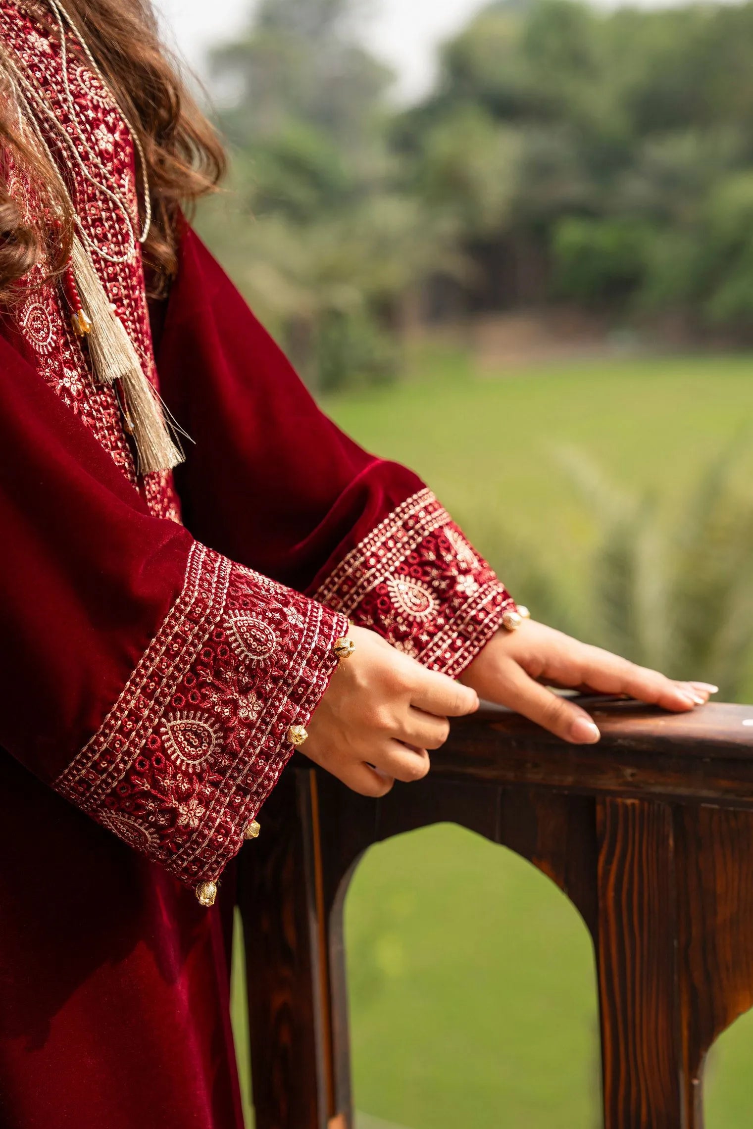 Embroidered Velvet Shirt with Multi Thread Work, Tilla and Sequence