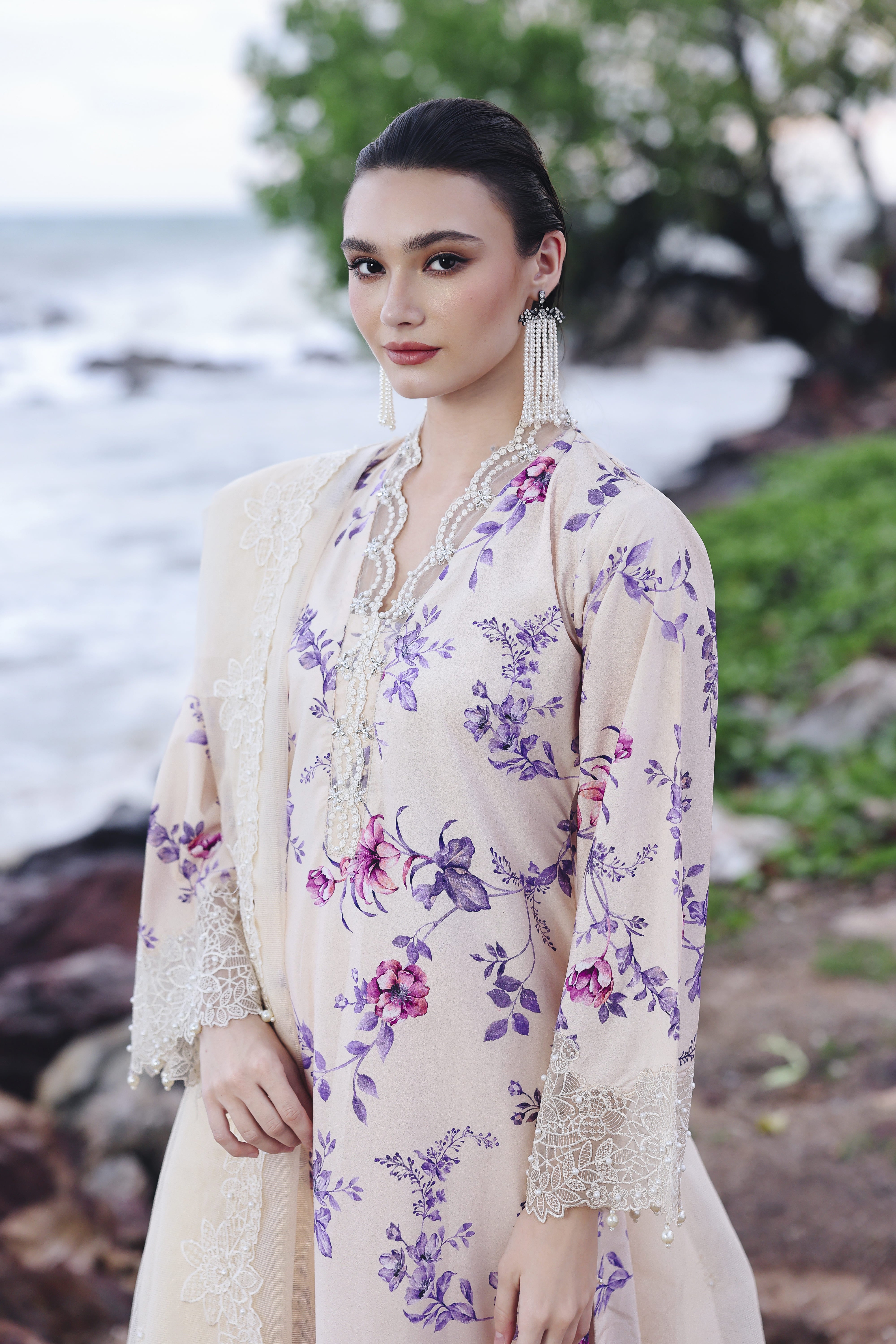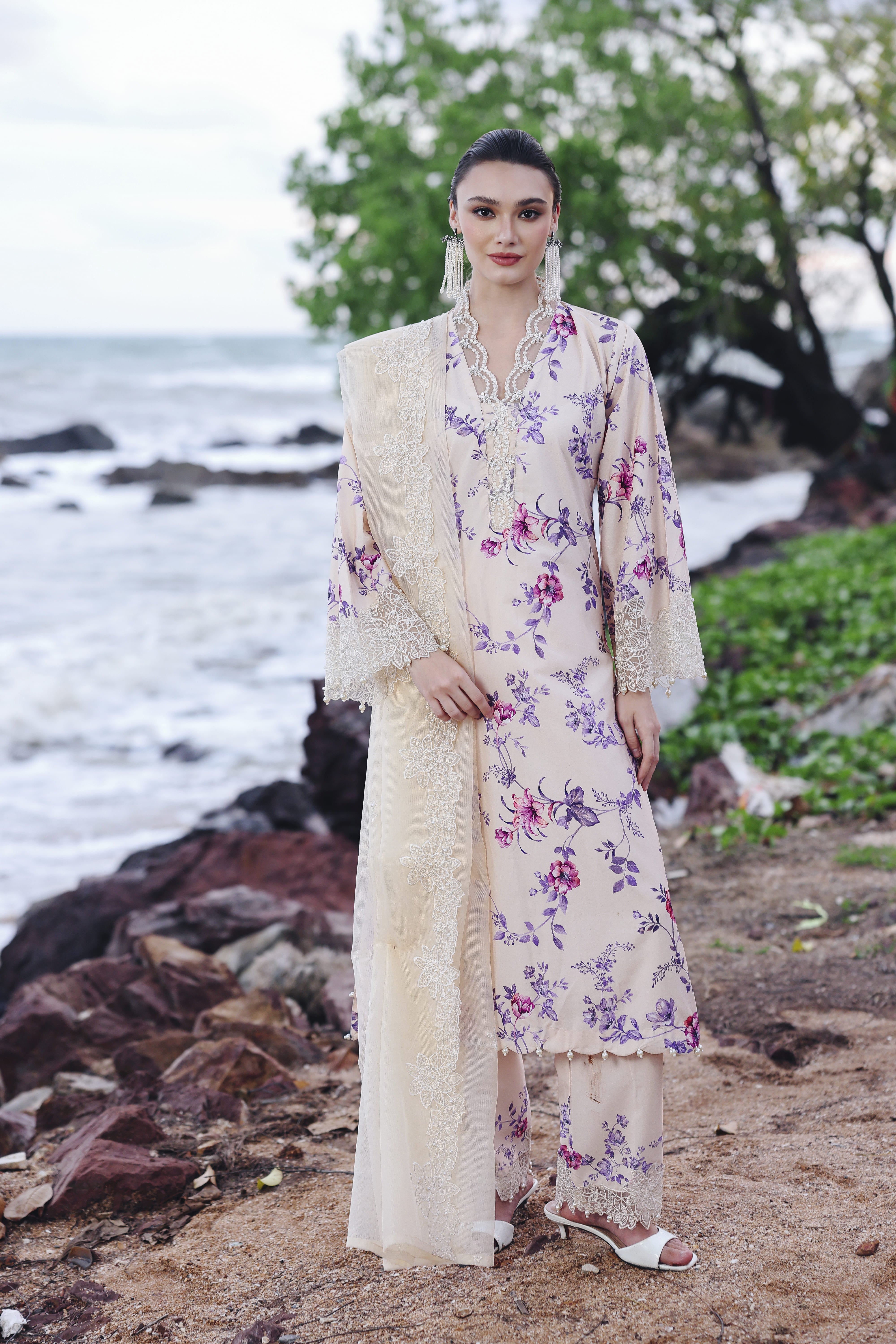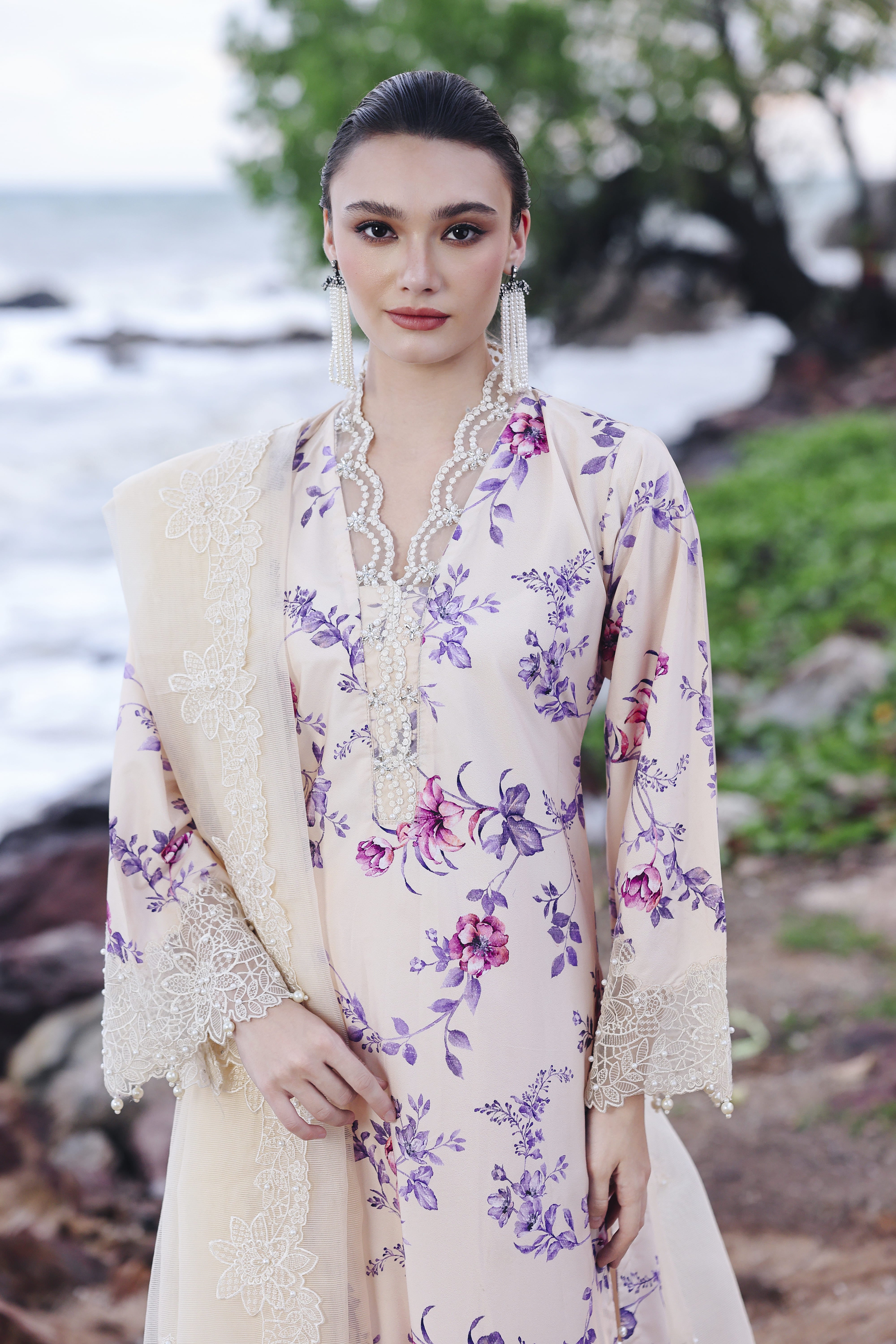 2-Pair it with a chiffon dupatta sprinkled with pearls
