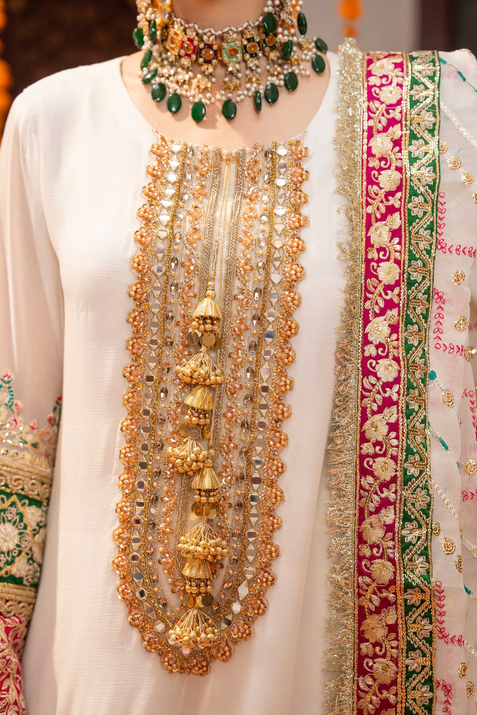 Crinkle Chiffon Shirt with Adda Work and Dori, Tussels on Neckline and Patches on Borders