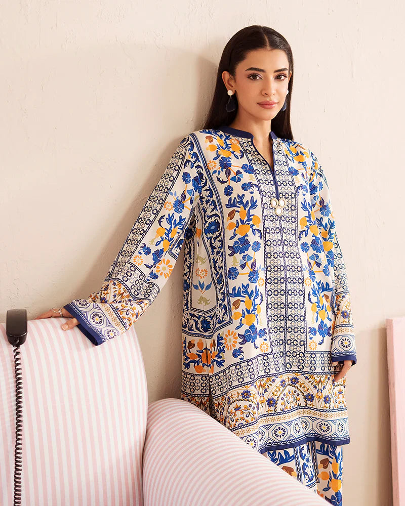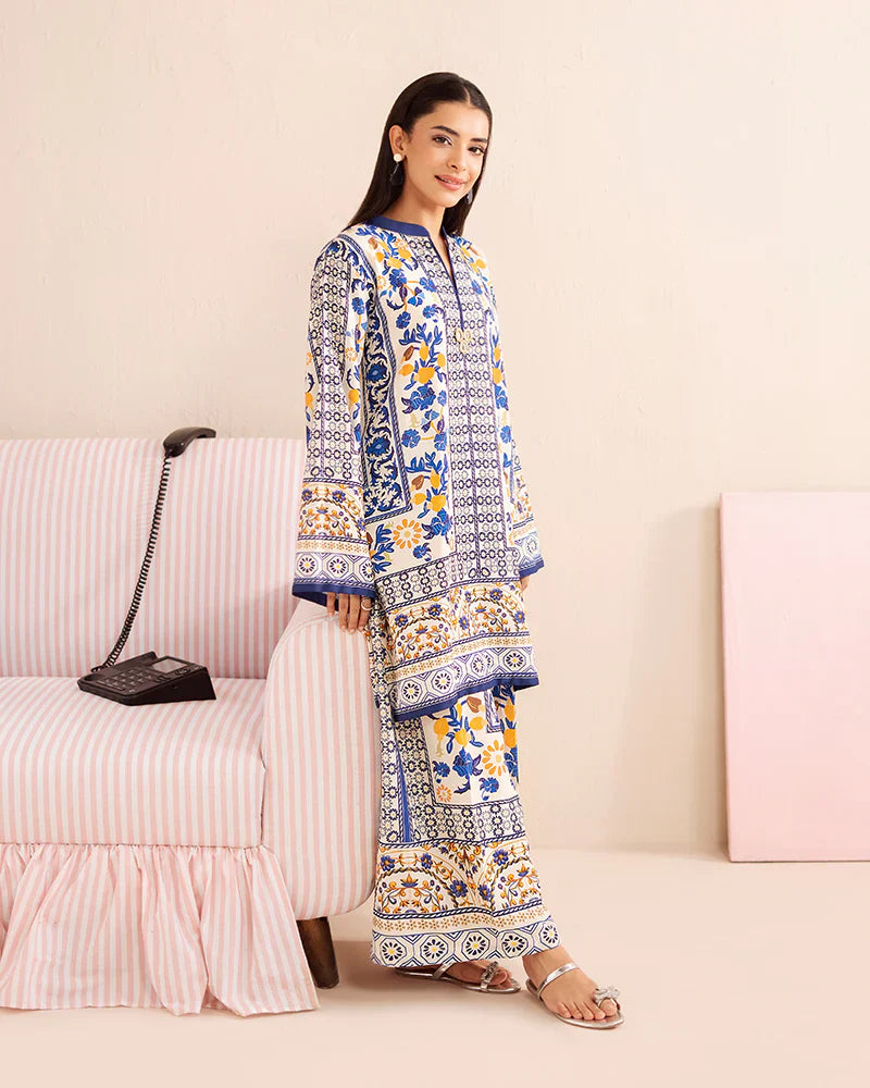 Description: Stunning printed lawn co-ord set! Crafted from the finest silk lawn, captivates the senses with its vibrant patterns and luxurious texture.
