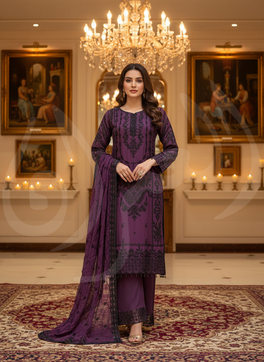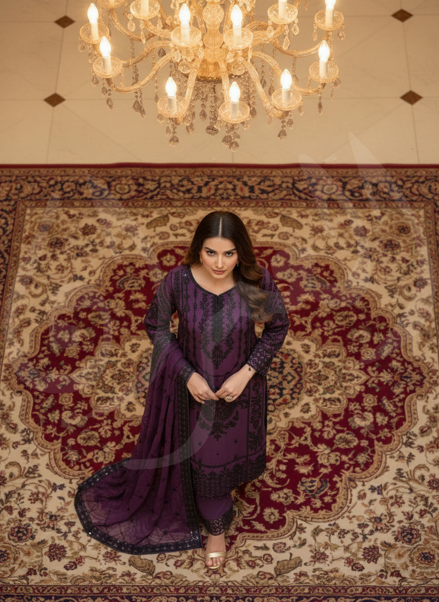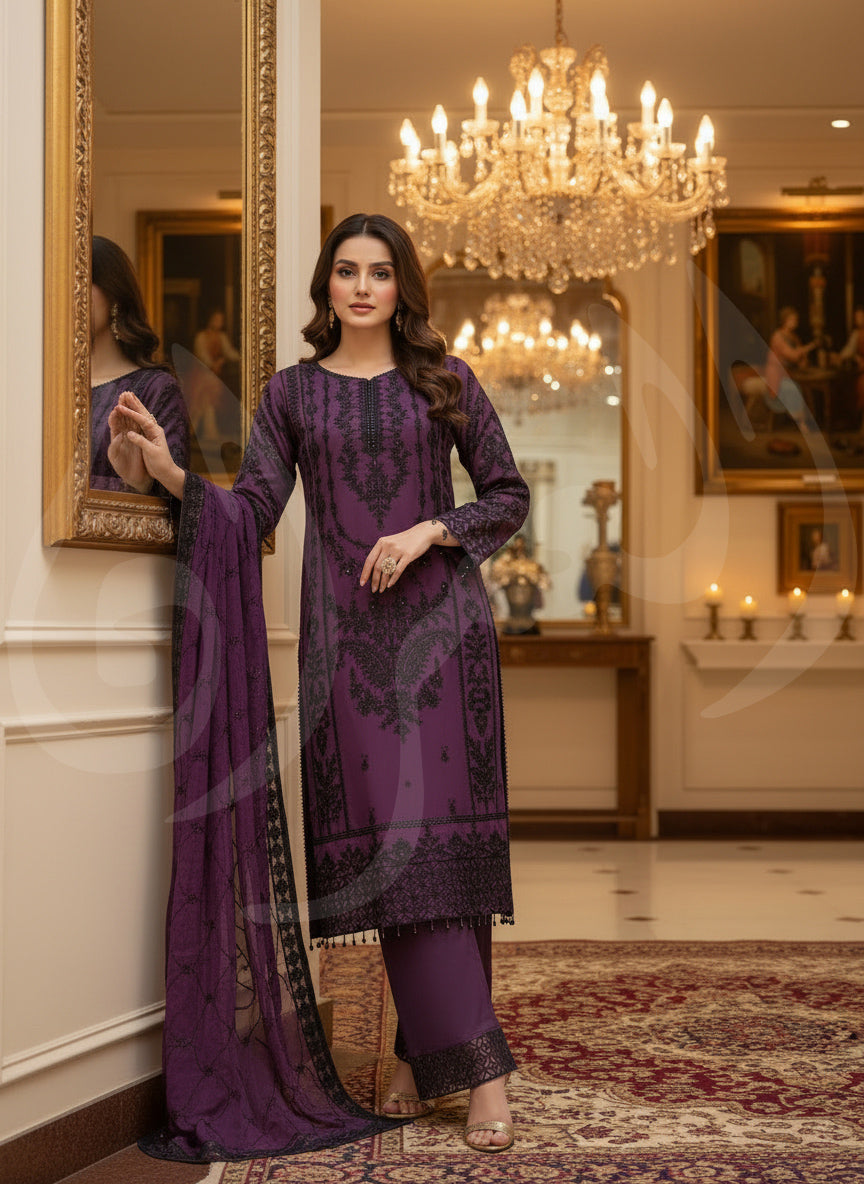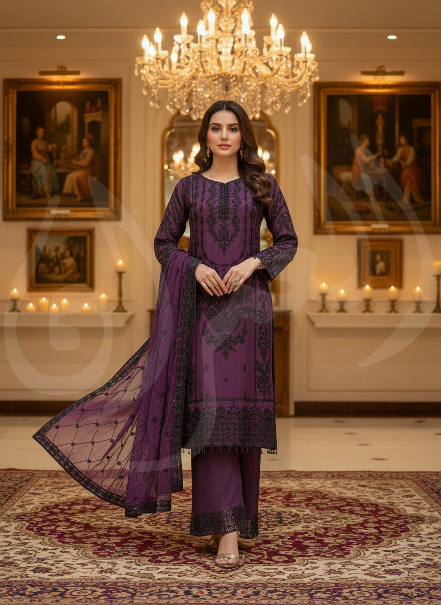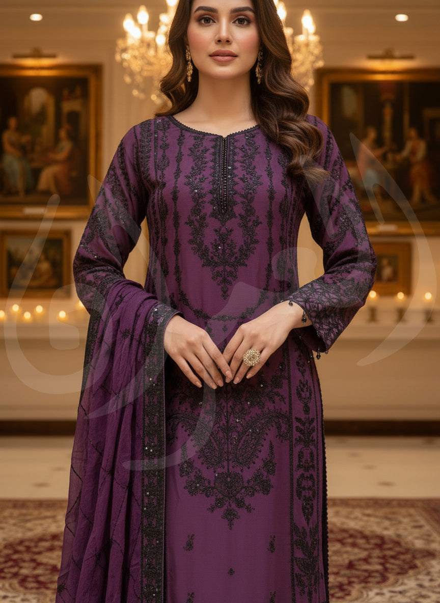 Step into elegance with this stunning ladies’ ensemble crafted in soft chiffon, paired with a graceful chiffon dupatta and comfy grip trousers. Adorned with intricate thread embroidery, sparkling sequins, and delicate pearls, this outfit radiates sophistication and charm—perfect for festive occasions, casual gatherings, or making a stylish statement wherever you go.