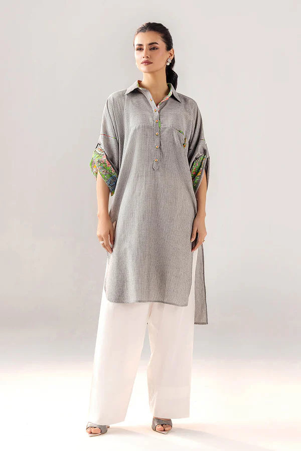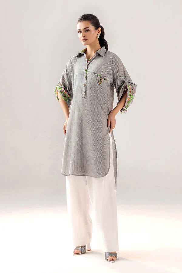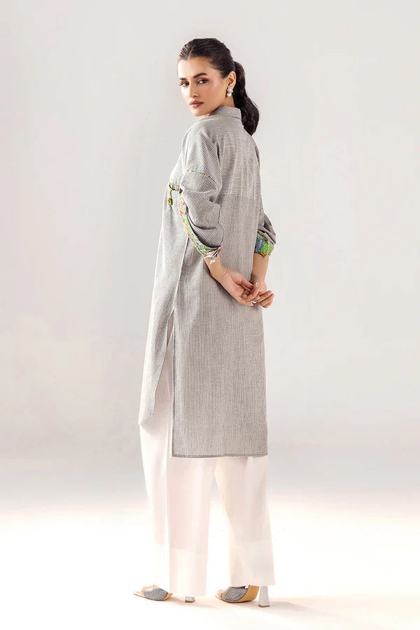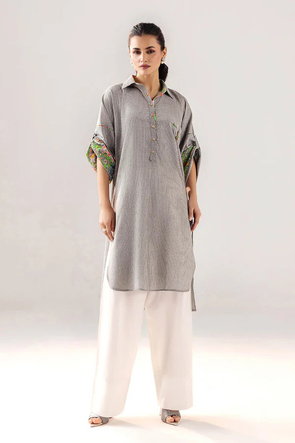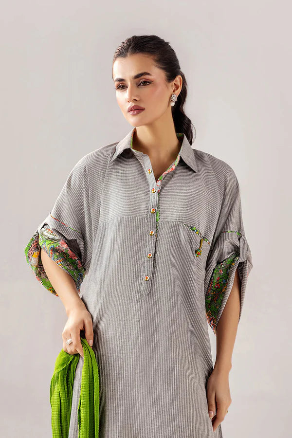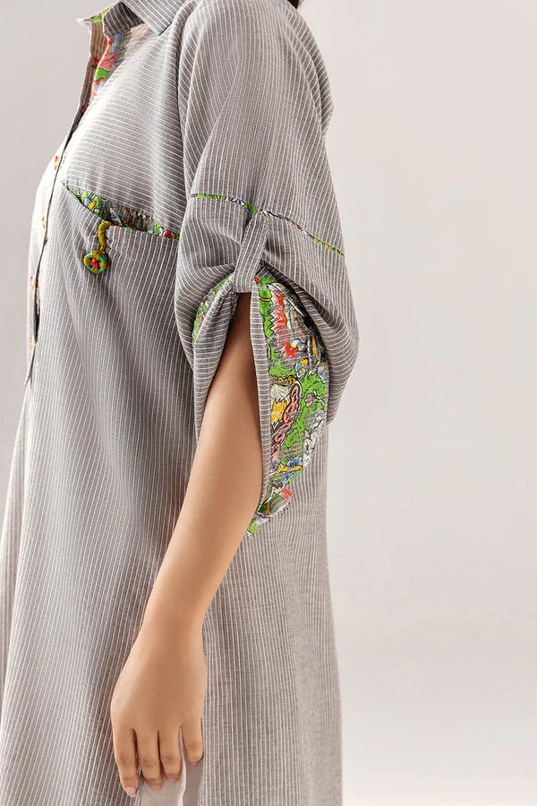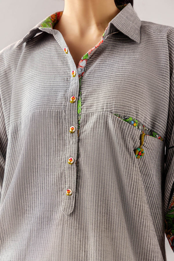 • Shirt: Yarn dyed cotton (printed applique, wooden buttons)