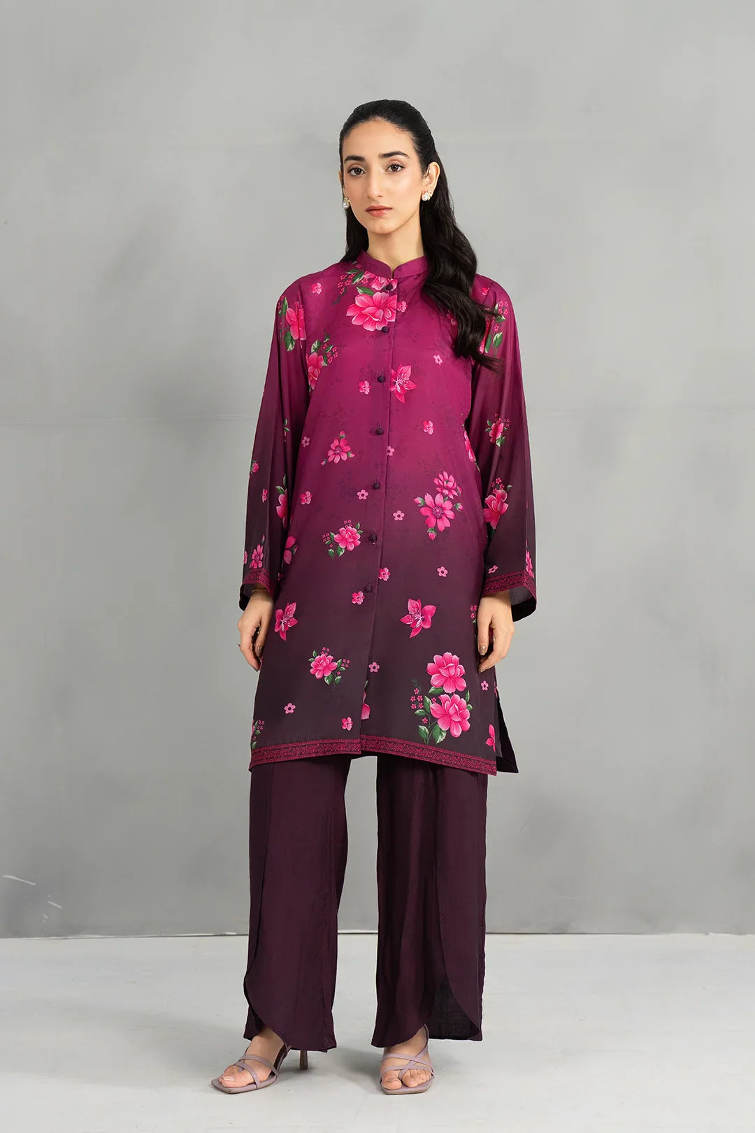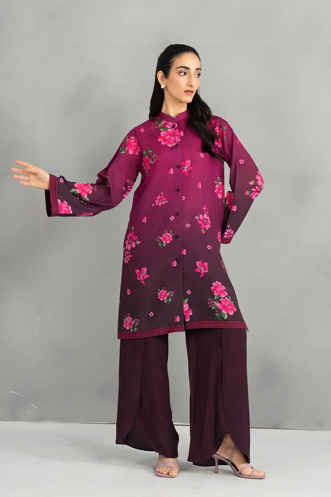 Deep berry tones paired with delicate florals create a look that feels rich, graceful,