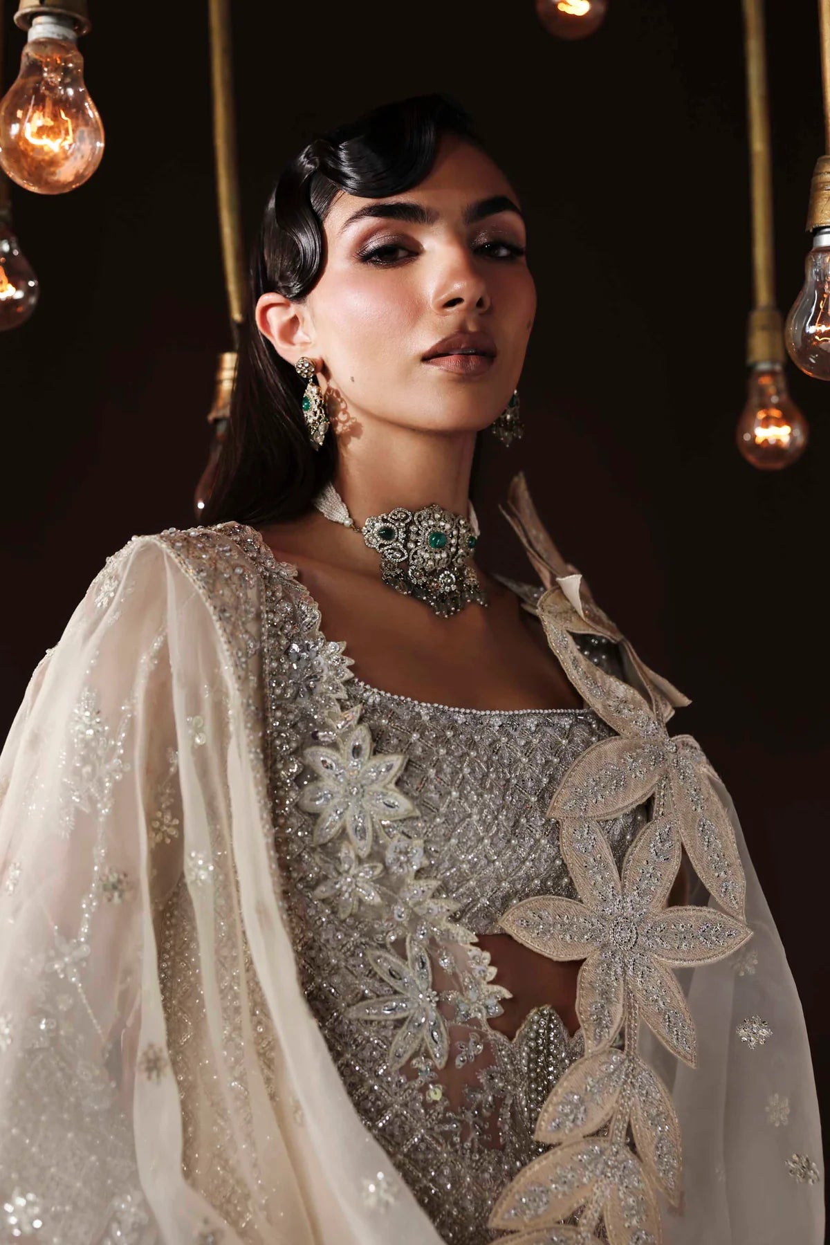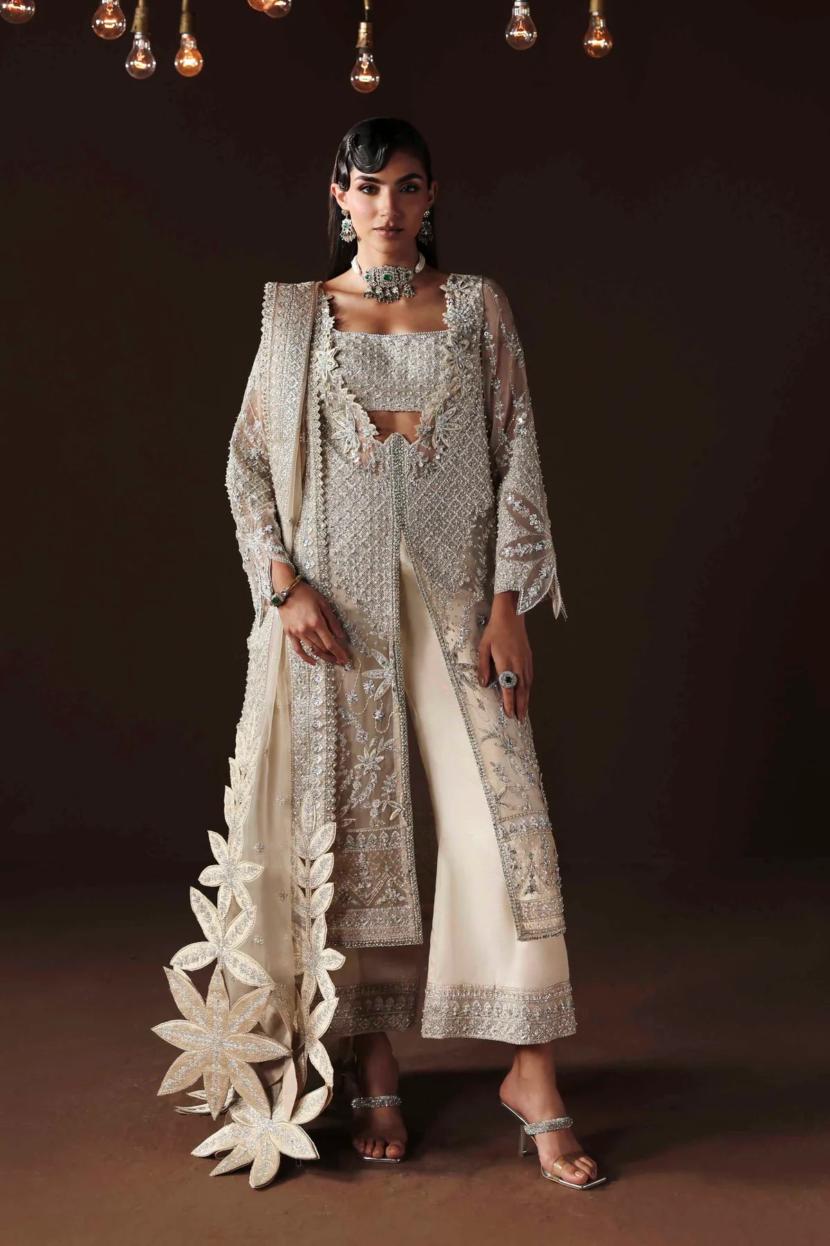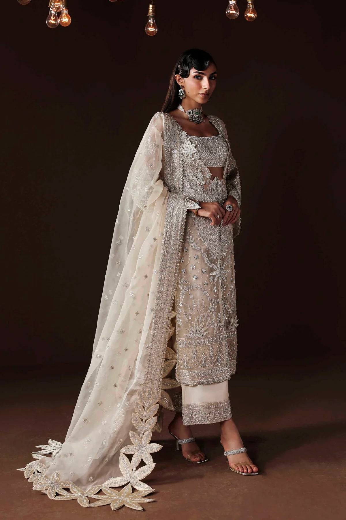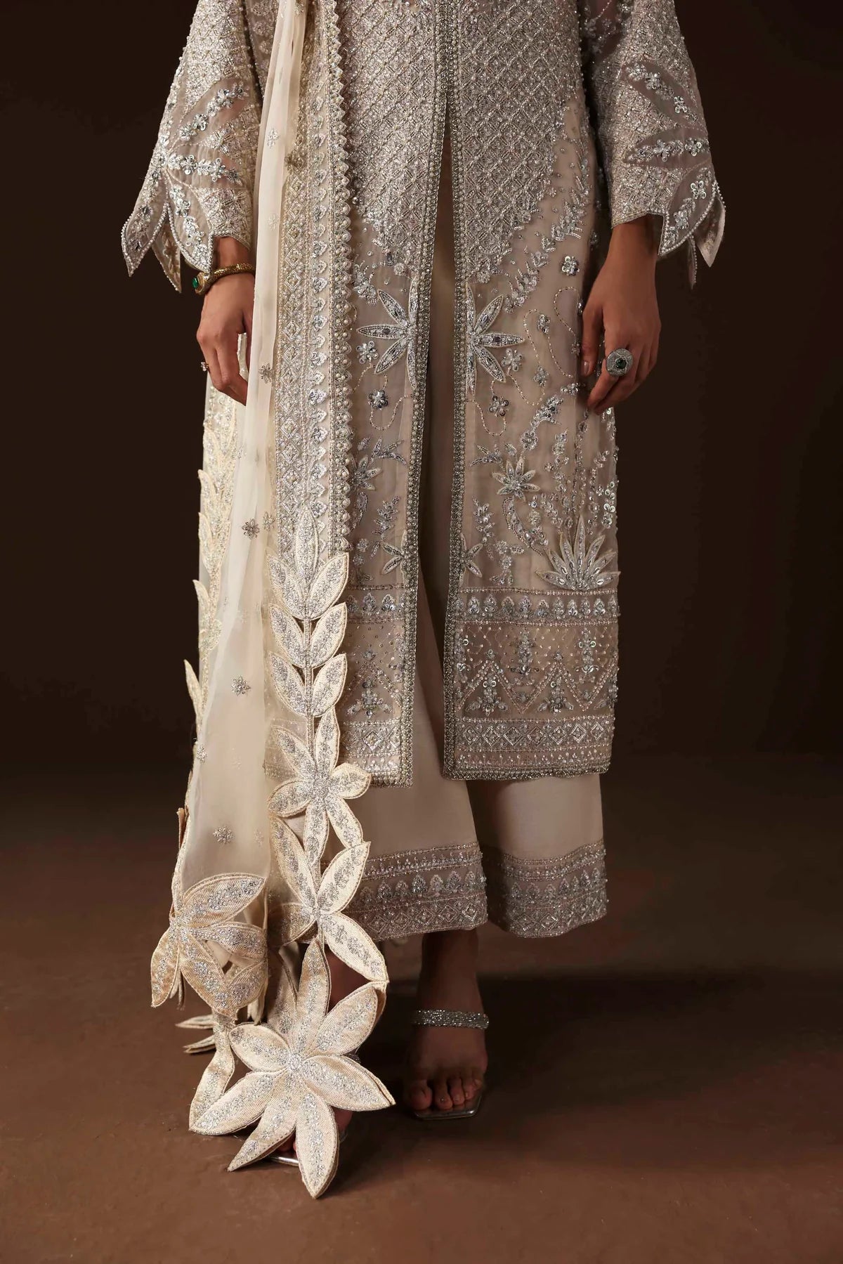 • Organza Embroidered Hand-Embellished Sleeves – 26"