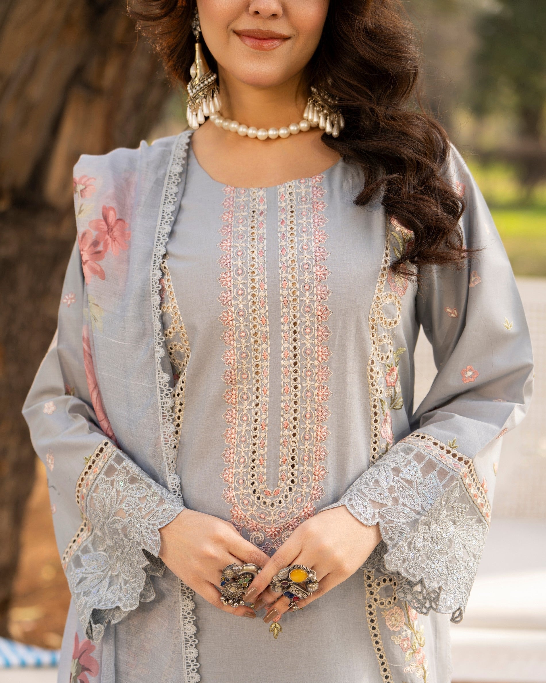 A graceful expression of classic craftsmanship blended with everyday elegance. This ensemble highlights delicate chikankari textures and soft prints, making it a timeless choice for refined festive or semi-formal wear.