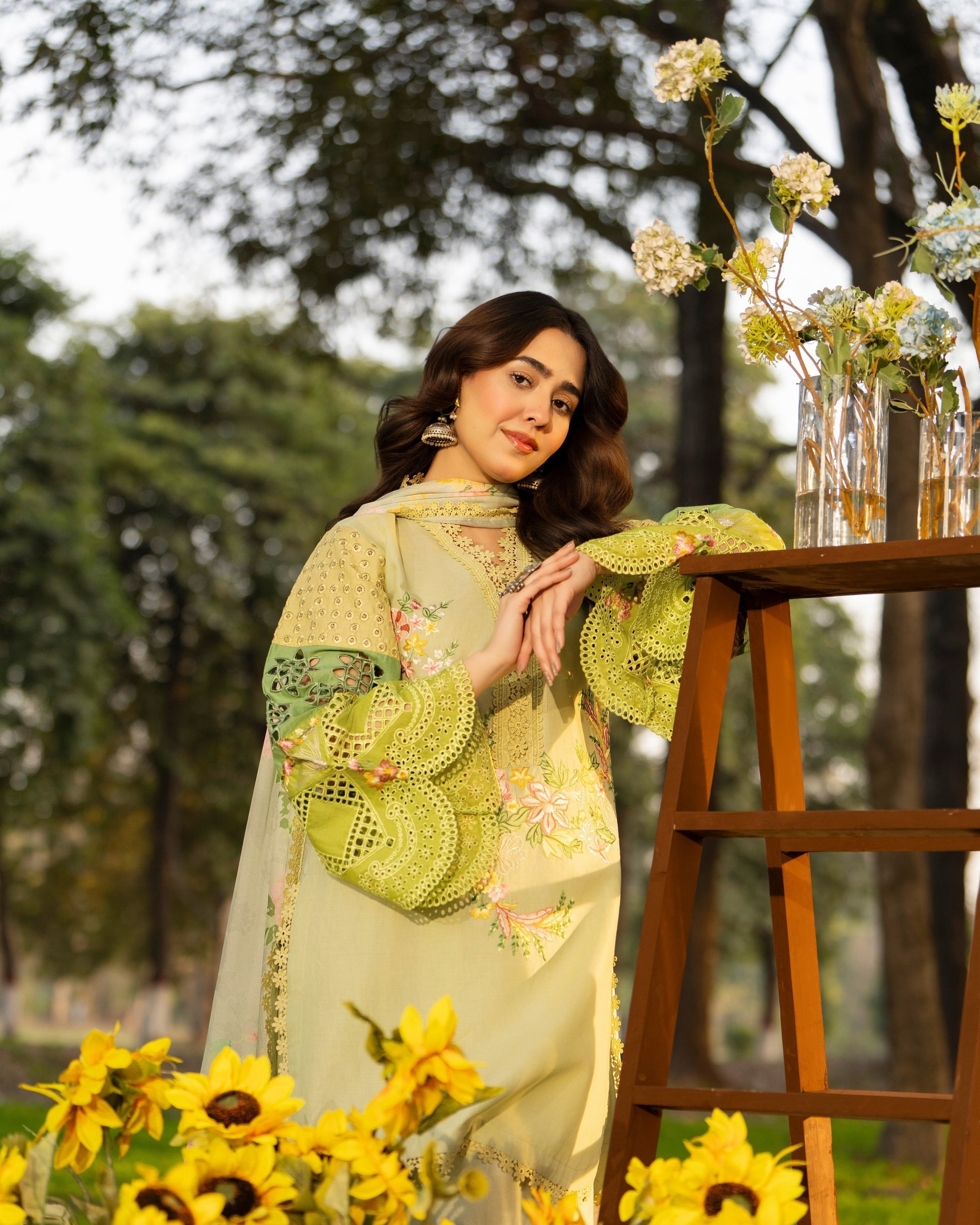 A refined blend of contemporary charm and intricate detailing. Designed to stand out with delicate embroidery and graceful accents, this ensemble offers a perfectly balanced look for festive and elegant daytime wear.