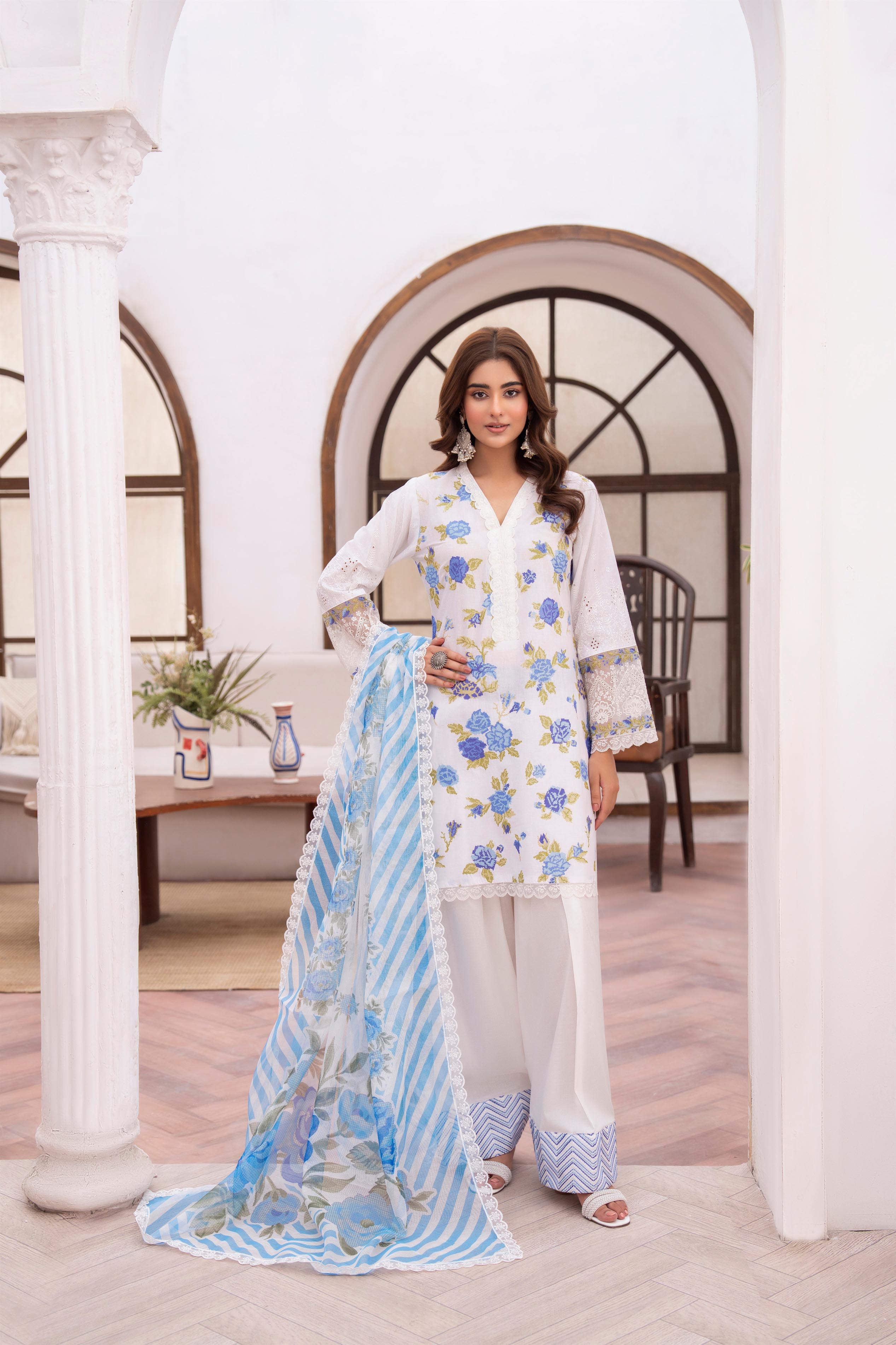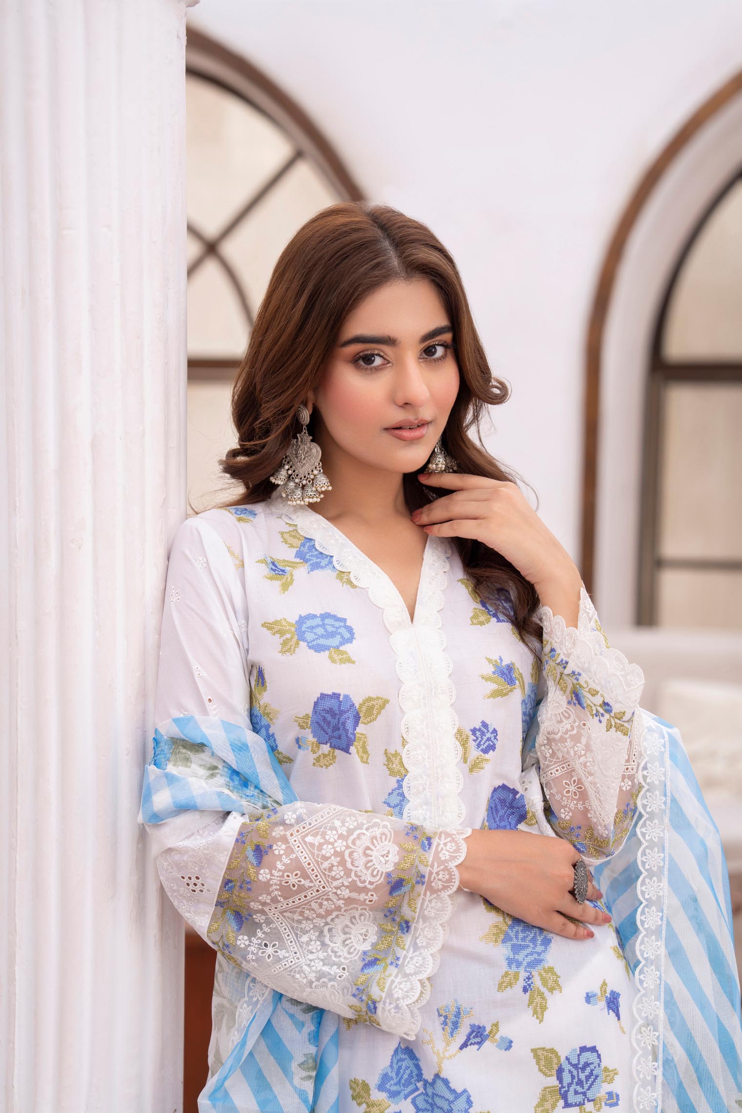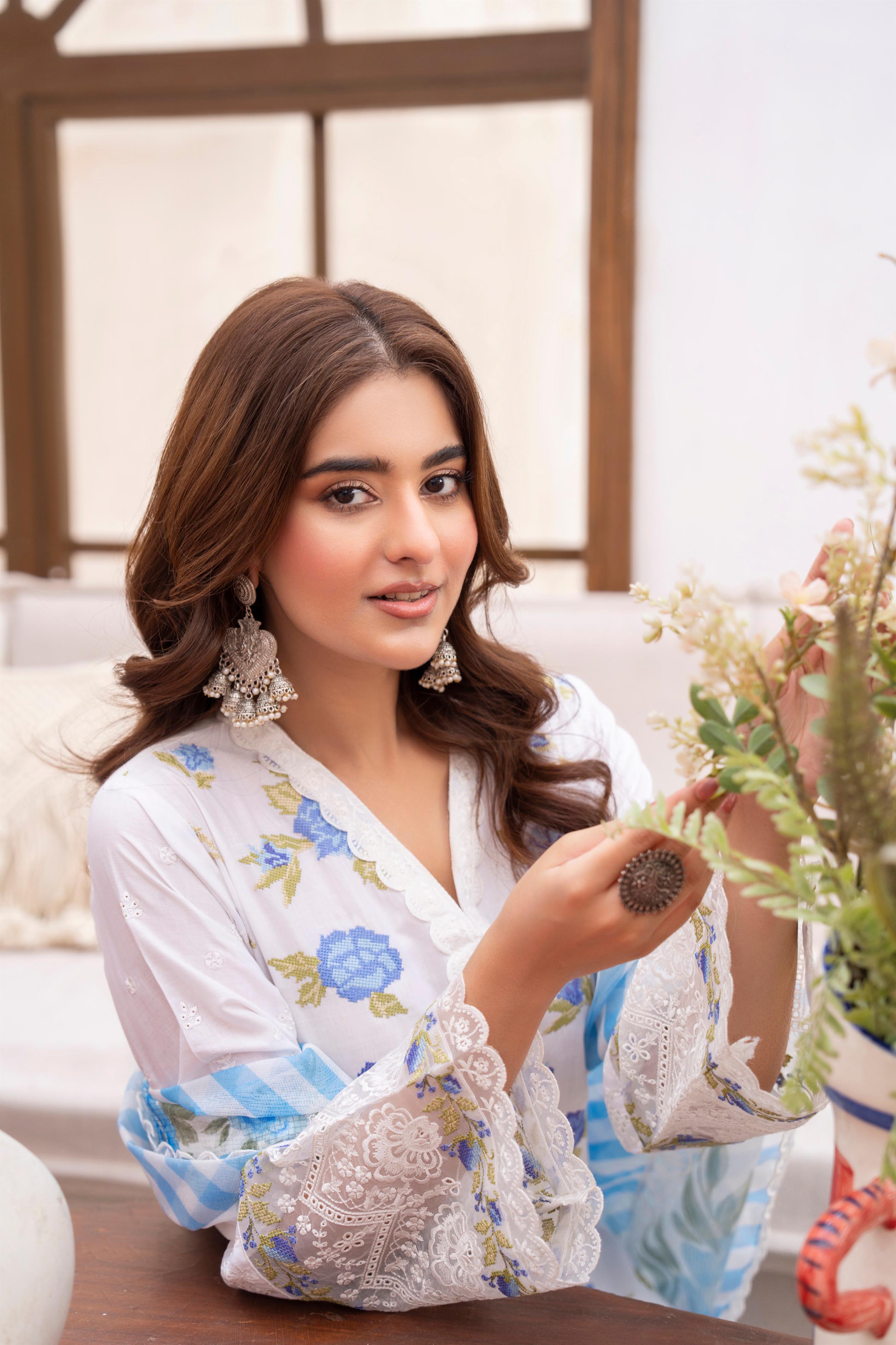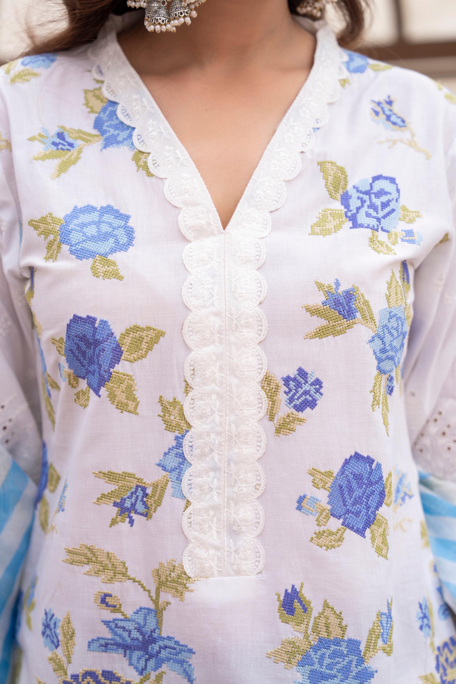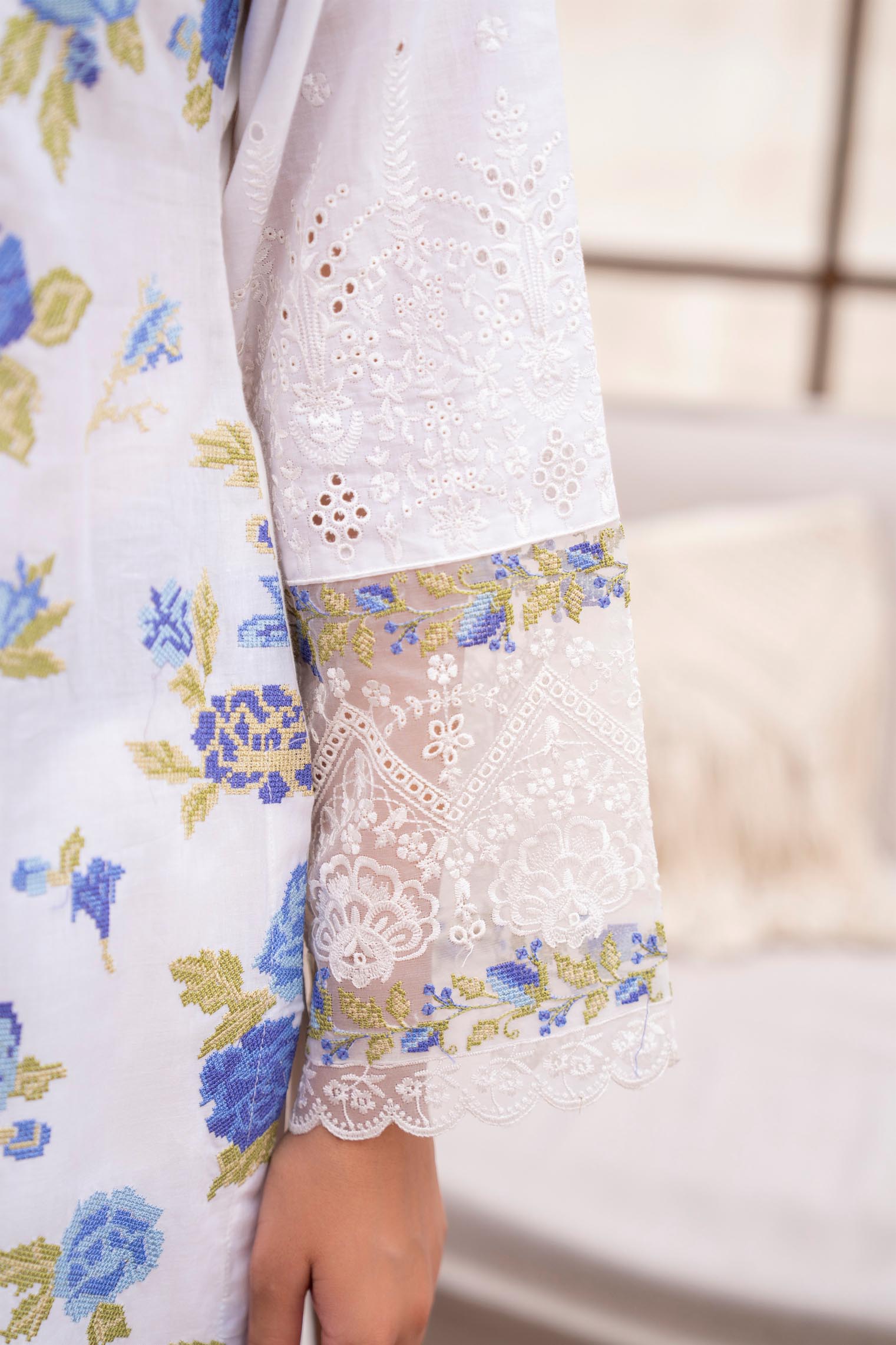 Shirt with Cross-stitch Multi Embroidery and Lace on Sleeves with