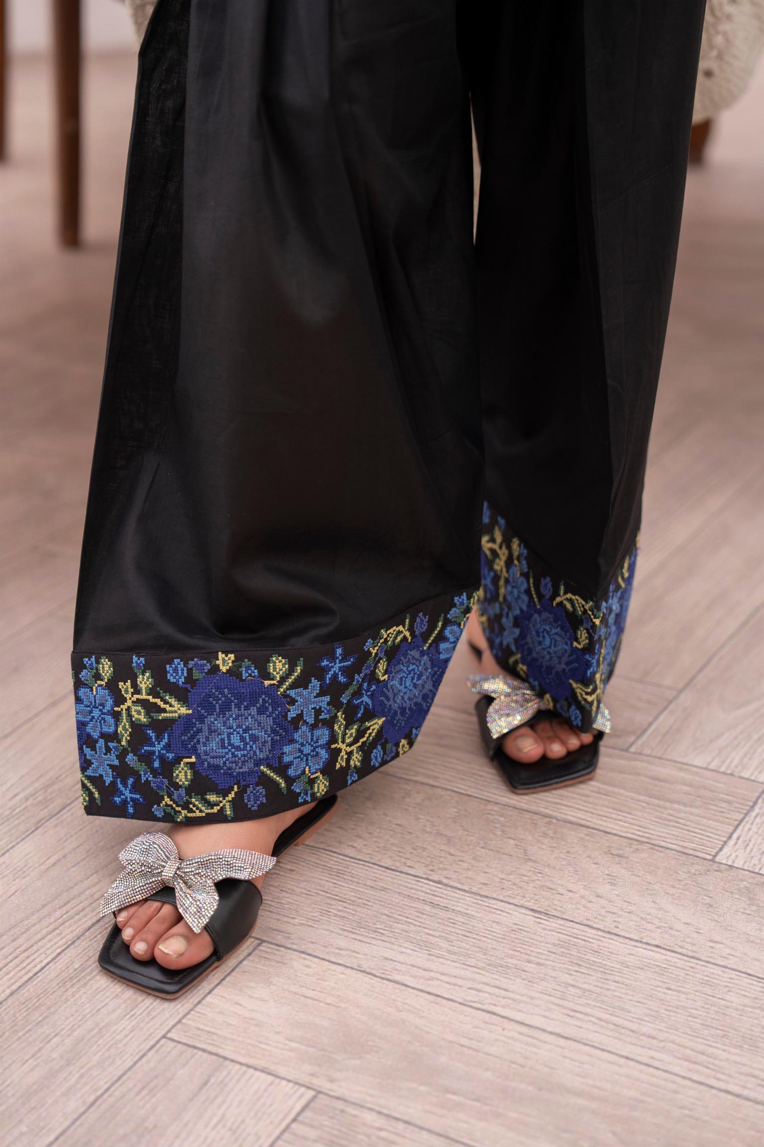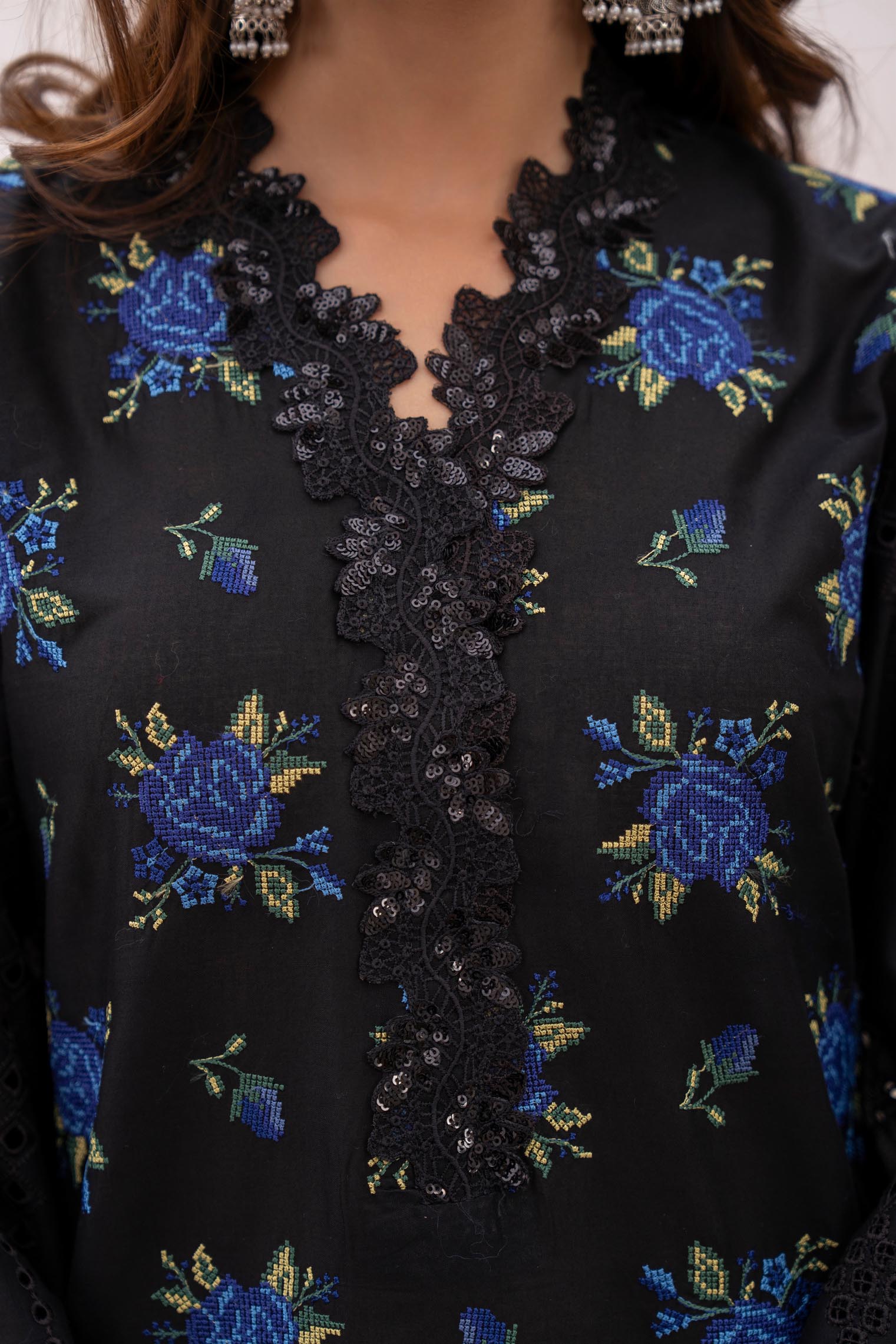Shirt with Cross-stitch Multi Embroidery and Lace on Sleeves with
