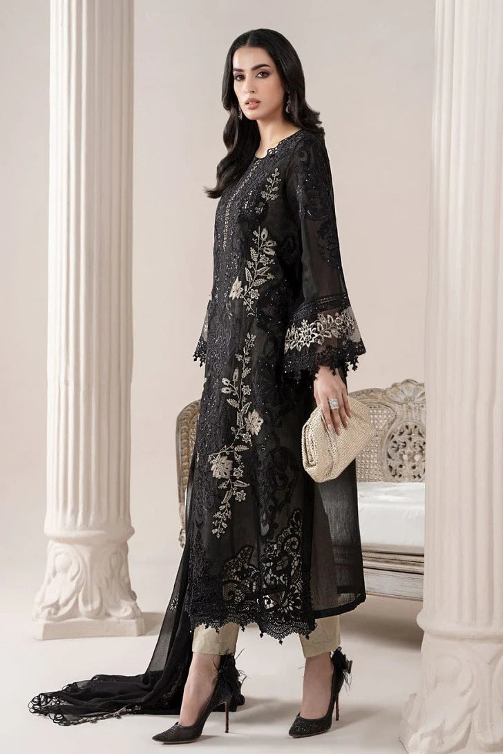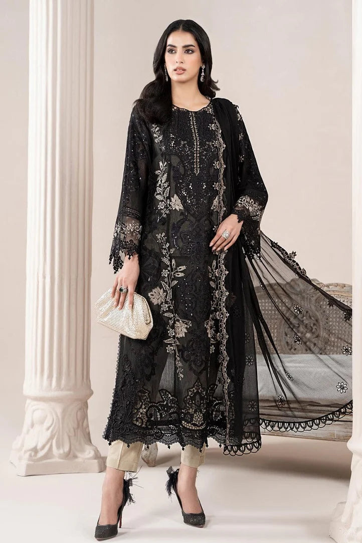 Immerse yourself in the elegance of this meticulously crafted 3-piece ensemble, reflecting the signature ethos of Maria B — where luxurious fabrics meet refined detailing and modern silhouettes intertwined with timeless tradition.
