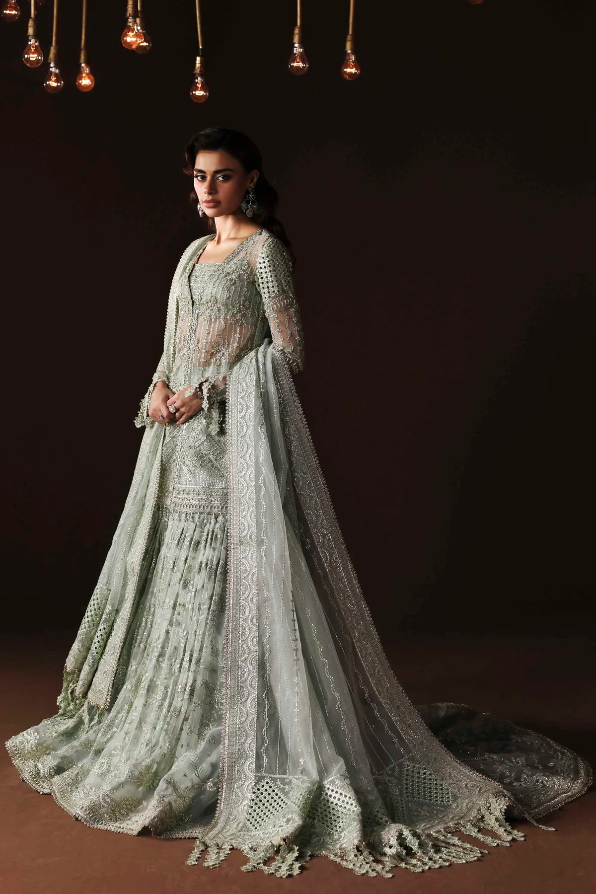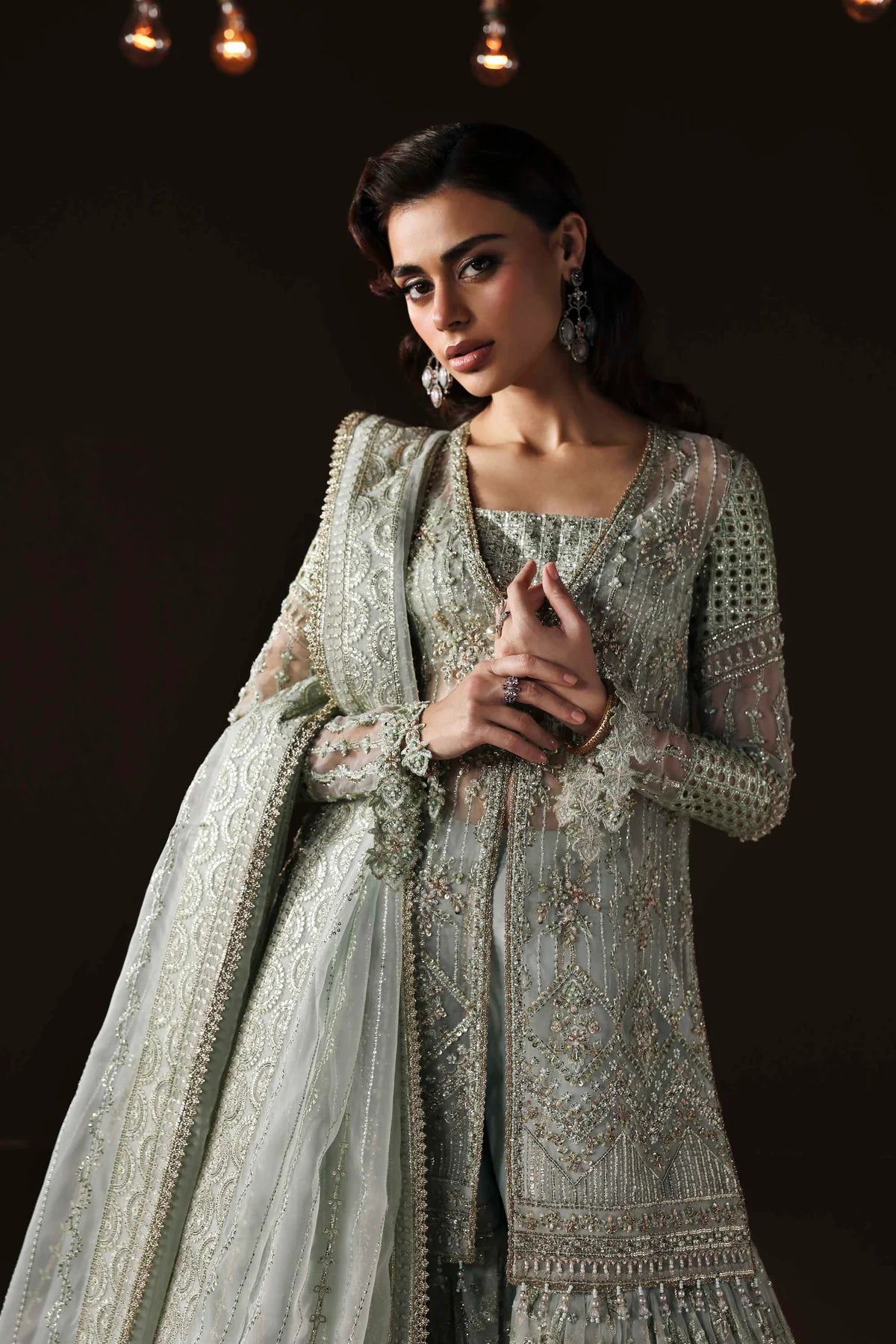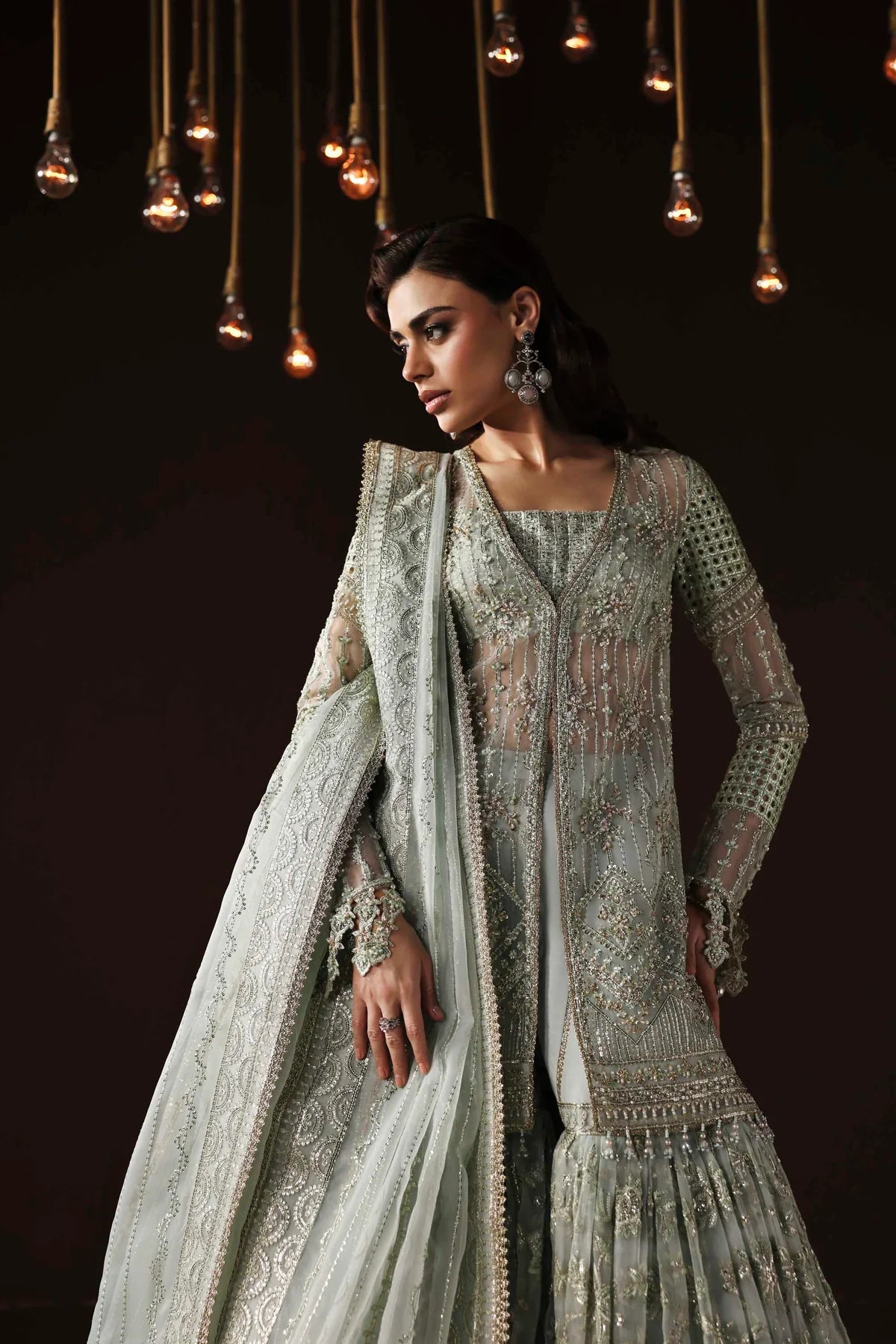 • Organza Embroidered Hand-Embellished Sleeves – 26"