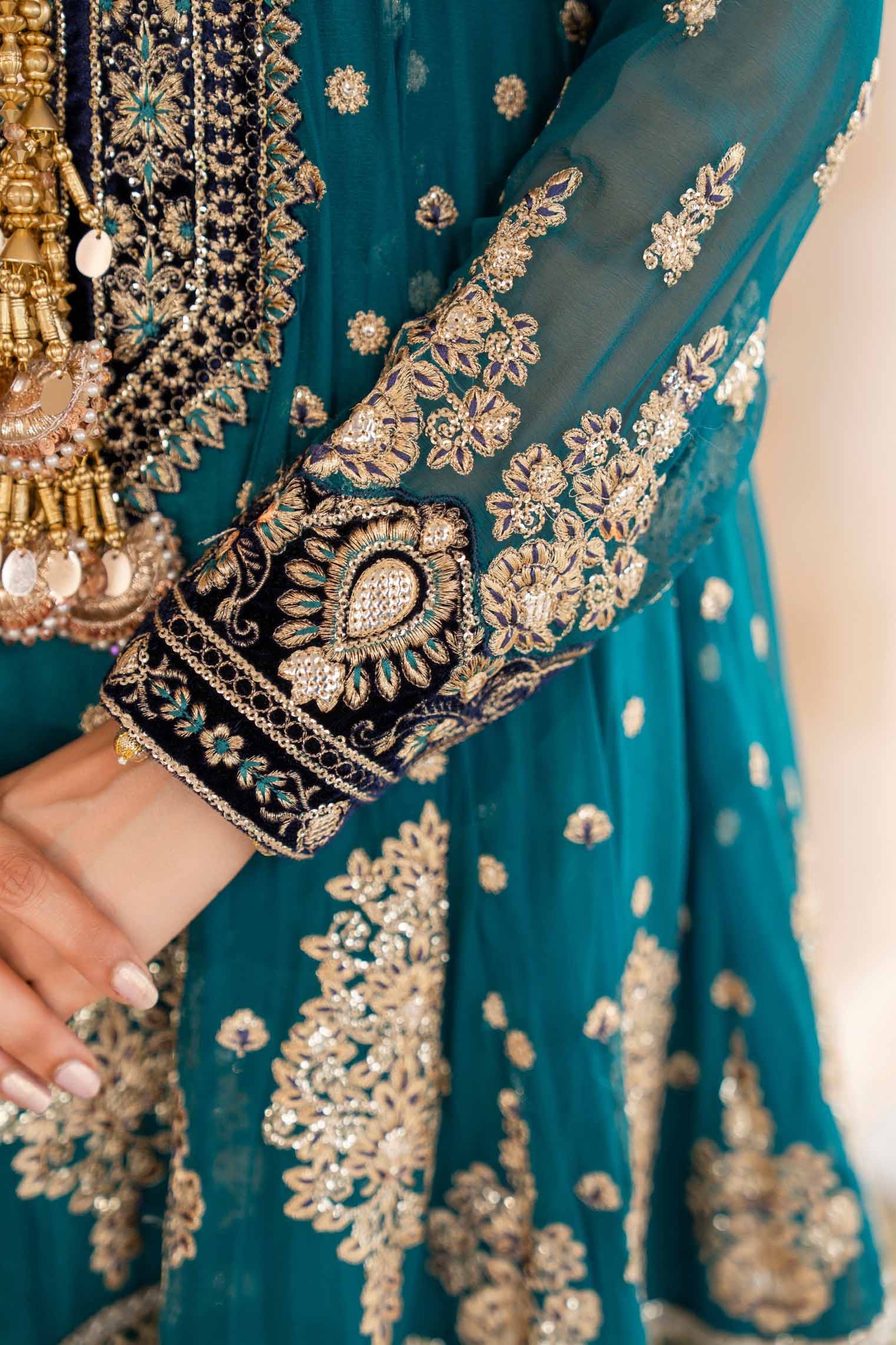 Crinkle Chiffon Kali Frock with Tilla, Panni and Sequence Work and Embroidery and