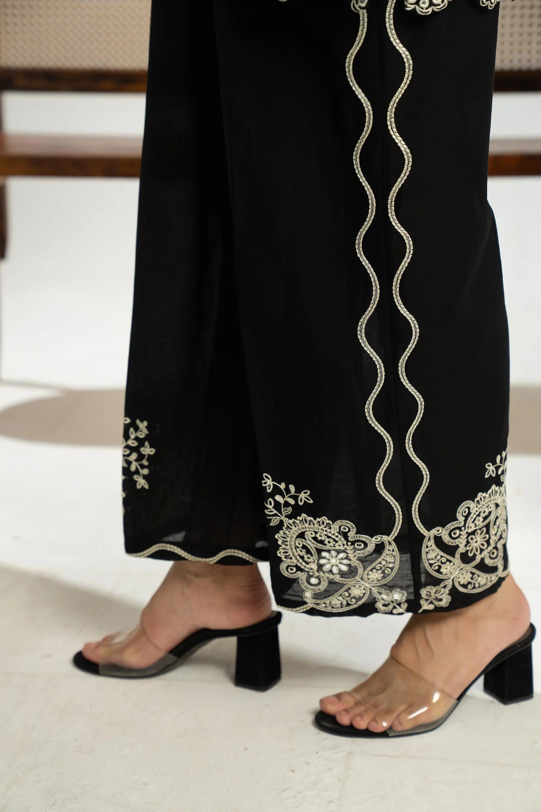 The Noir 2-piece ready-to-wear suit redefines everyday elegance with its exquisite embroidered lawn fabric. Featuring a meticulously embroidered shirt and coordinating trousers, this ensemble offers a harmonious blend of sophistication and comfort. Ideal for those who seek a polished yet effortless look, Noir is the perfect choice to enhance your daily wardrobe with timeless style.