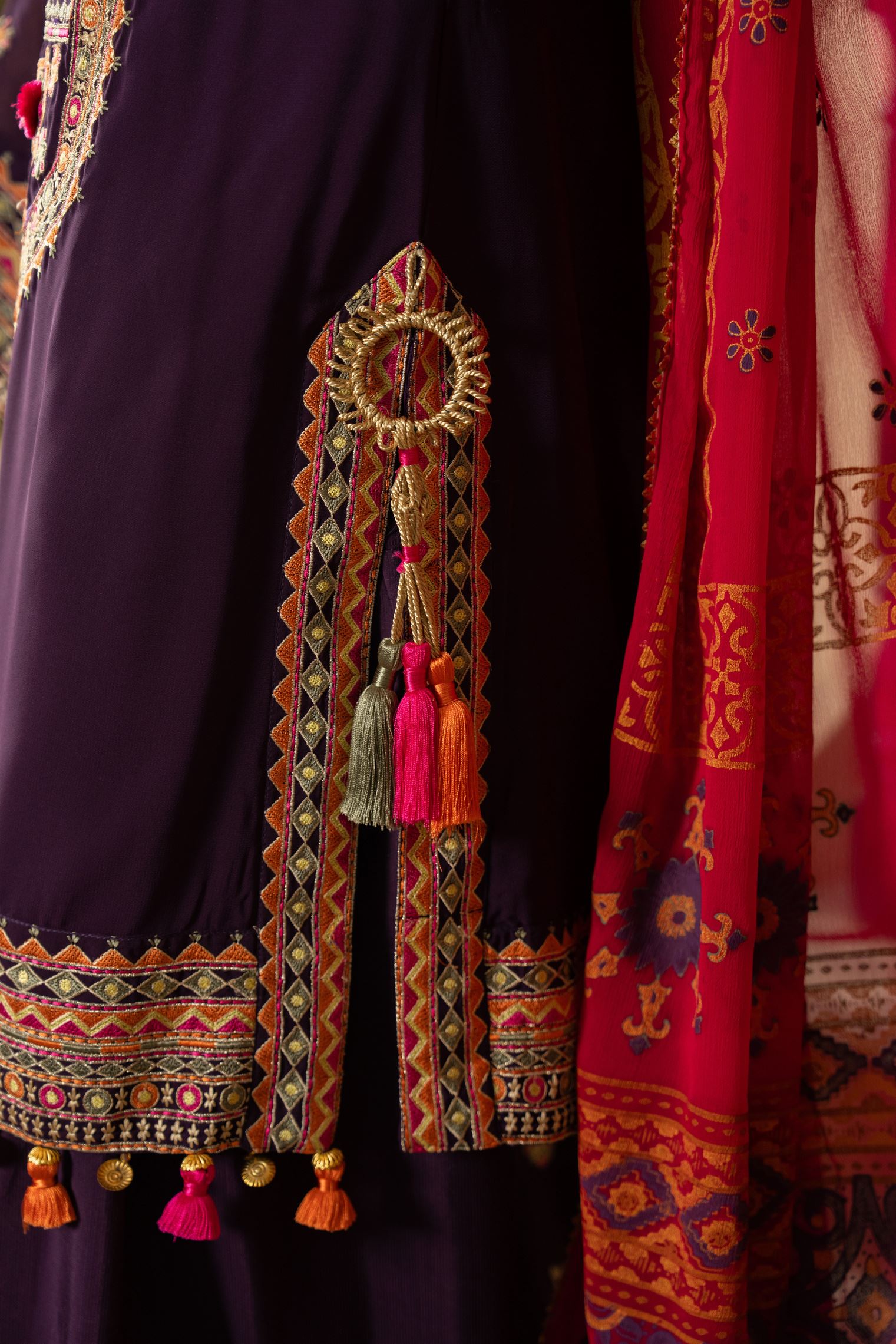 Georgette Chiffon Shirt with Tilla and Multi Thread Work Embroidery , Tussels on