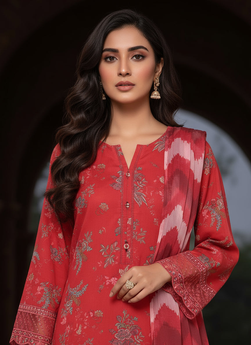Soft printed chiffon dupatta that beautifully complements the outfit with a touch of graceful flow.