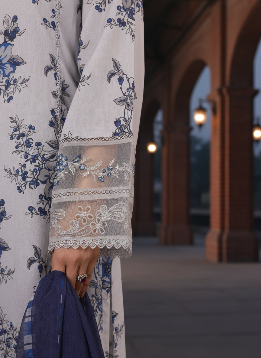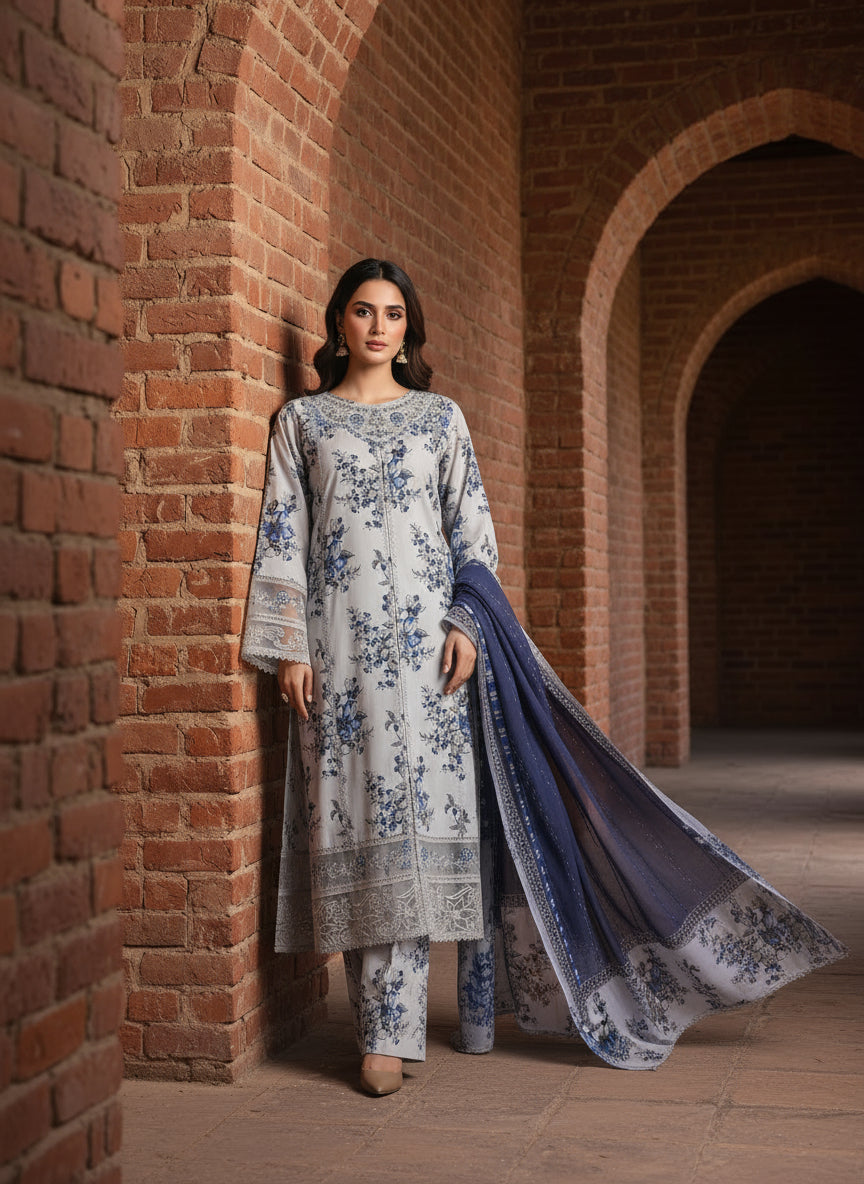 Soft printed chiffon dupatta that beautifully complements the outfit with a touch of graceful flow.