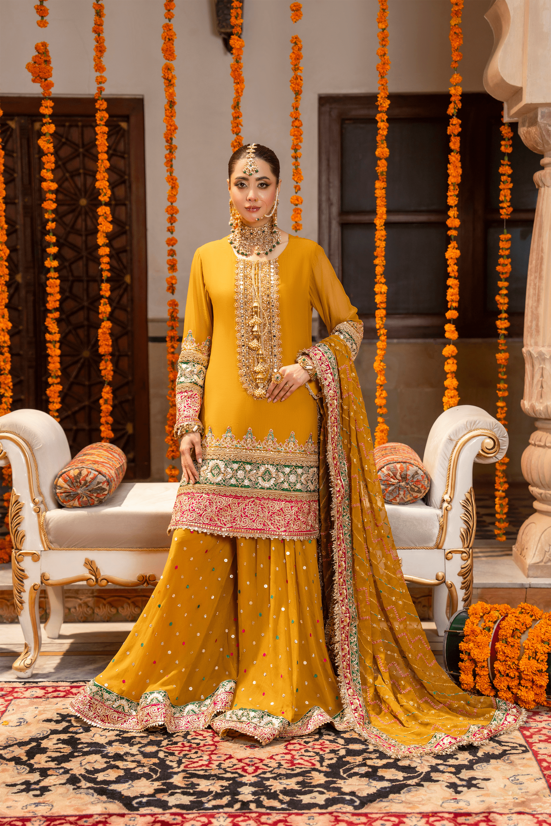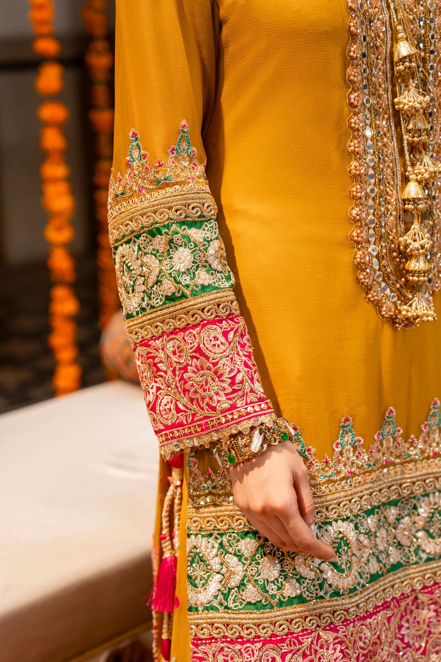 Crinkle Chiffon Shirt with Adda Work and Dori, Tussels on Neckline and Patches on Borders