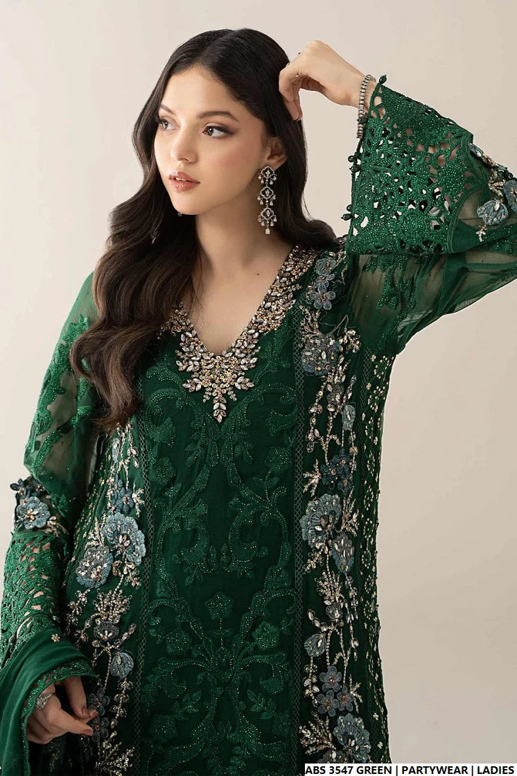 This graceful 3-piece outfit features a chiffon shirt styled in a classic straight cut paired with plazo trousers, creating an effortlessly elegant look. The viscose trousers provide a soft and comfortable fit, while the chiffon dupatta adds a flowing, feminine finish to the ensemble. With a shirt length of 45 to 47 inches, this outfit is perfect for festive gatherings, formal events, or any special occasion where style meets comfort.