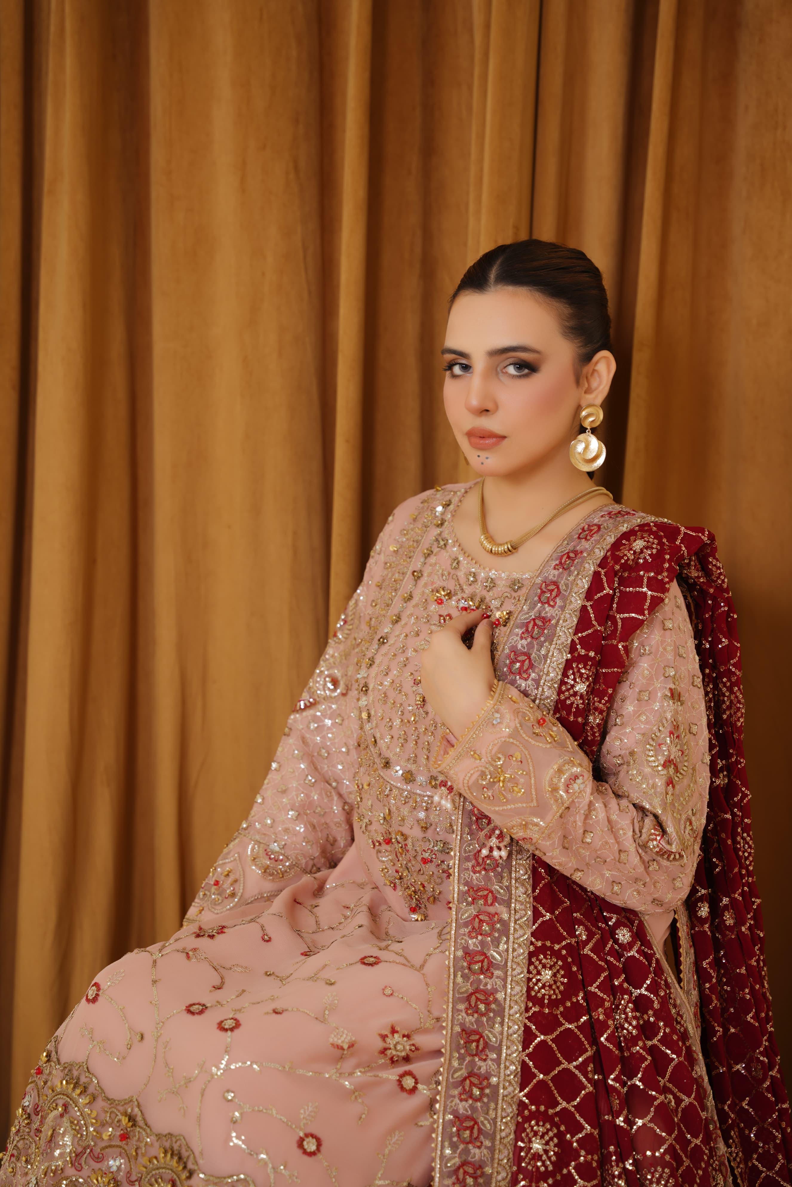 • Dupatta Fabric & Color: Contrasting Maroon chiffon , enhancing the overall look with rich color contrast