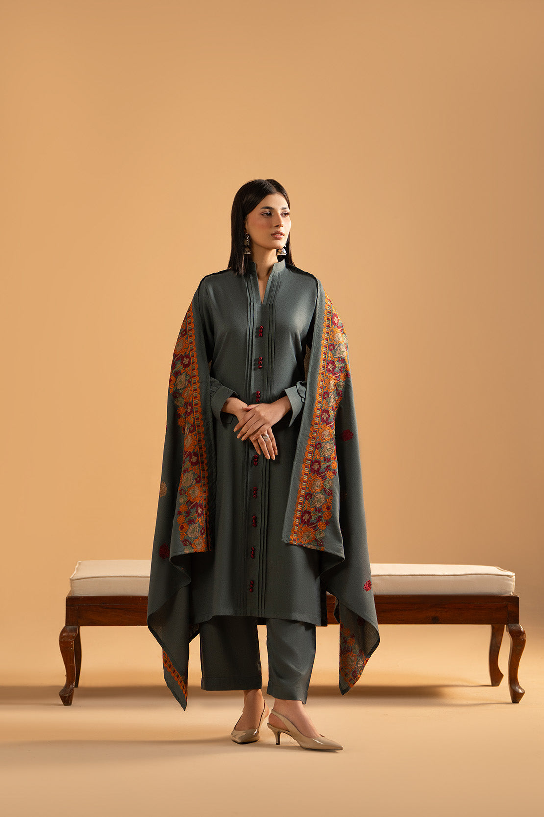 Stitched in soft, premium Dhanak fabric, designed with elegant detailing and a refined winter look.